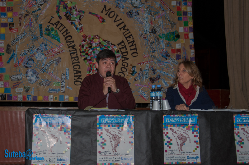 Leonardo Messa, Secretario General del SUTEBA local, estuvo encargado de abrir el encuentro. Comenzó retomando la presencia de los 30.000 compañeros detenidos-desaparecidos y celebró la restitución de la nieta Nº 117. En ese sentido, destacó que la política de DDHH forma parte de los lineamientos políticos del SUTEBA desde su constitución. Luego también recordó a Stella Maldonado como impulsora del Movimiento Pedagógico Latinoamericano, con todo lo que implica como proyecto político-pedagógico, cuyo objetivo es poner a la par los procesos políticos y económicos de América Latina y los procesos que viven la Escuela y la Educación, entendiendo a esta última como un Derecho Social para todo el continente. En ese sentido, continuó señalando que es necesario ver "dónde estamos parados para continuar la lucha del SUTEBA".