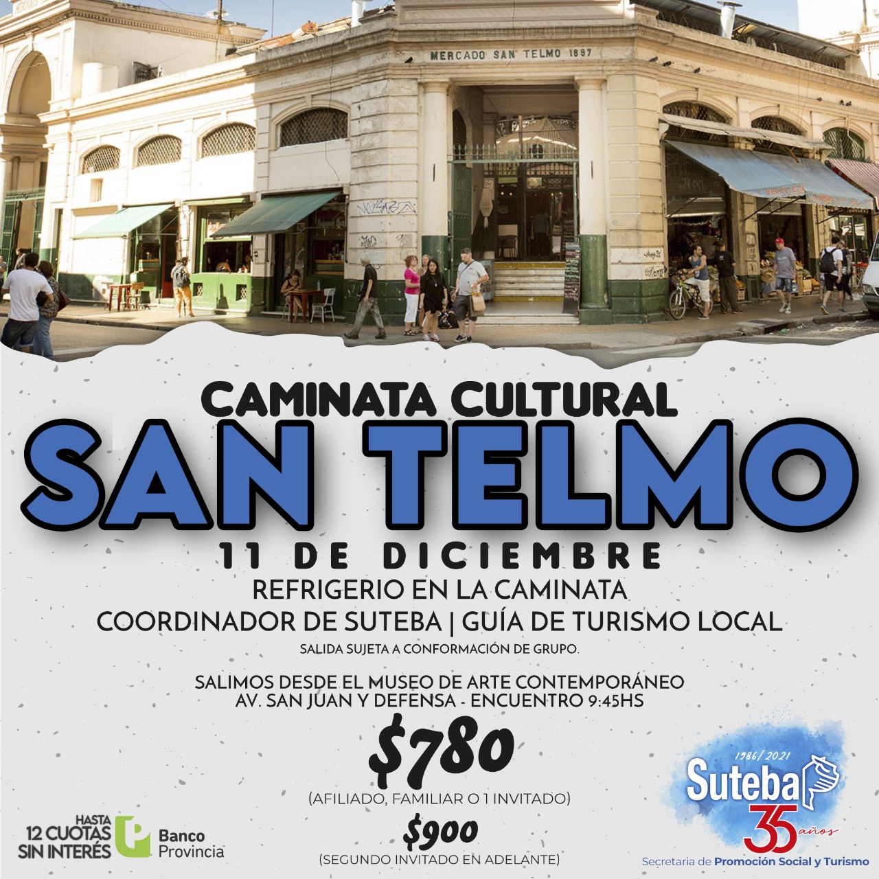 El sábado 11 de diciembre, la Secretaría de Promoción Social y Turismo del SUTEBA llevó a cabo la primera de una serie de Caminatas, la que denominamos "Caminata Cultural por Buenos Aires". En esta oportunidad nos circunscribimos en el barrio de San Telmo.
