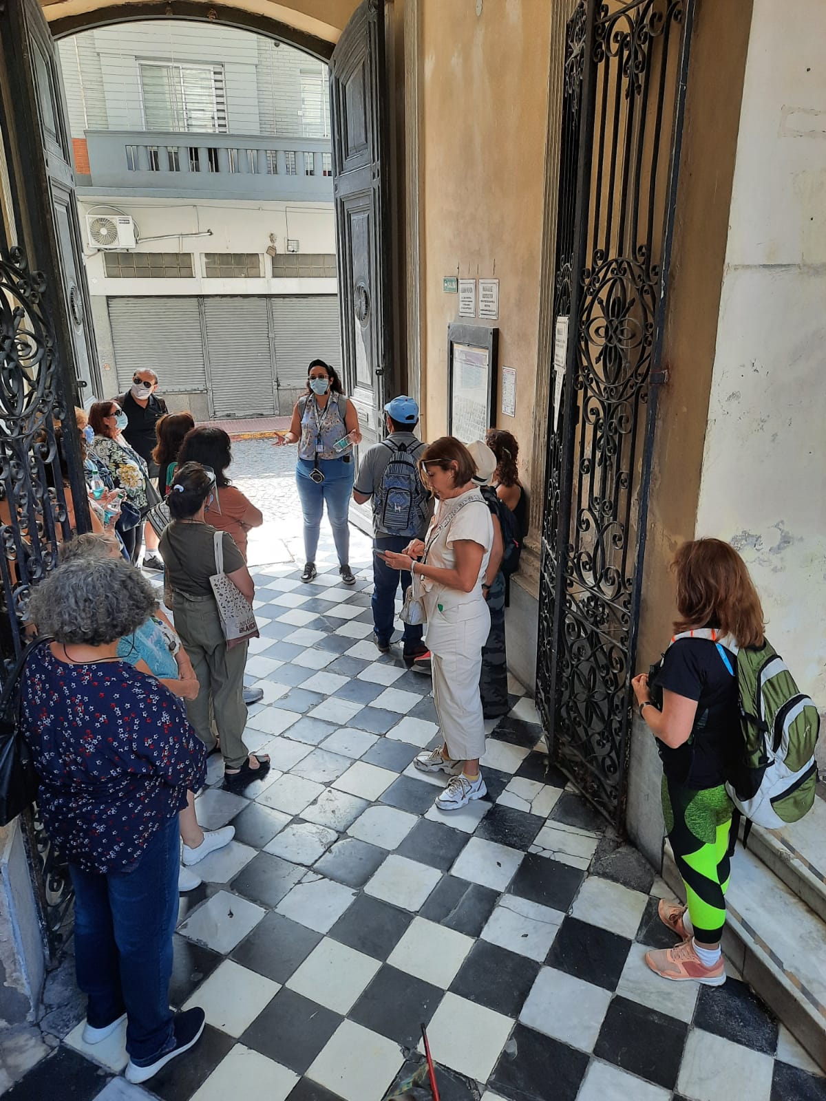 Durante la mañana, el recorrido inició en el Museo de Arte Contemporáneo con la compañía de Cintia, una guía local de turismo, y luego visitamos los siguientes sitios: Parroquia San Pedro Telmo, Galería de la Defensa, Galería Solar French, Plaza Dorrego, Mercado de San Telmo y Facultad de Ingeniería. Luego, se hizo un alto en el Bar "El Federal", uno de los Bares Notables de Buenos Aires, tomando un cafecito o gaseosa para seguir con nuestra caminata.