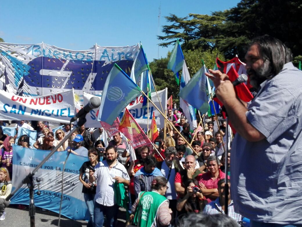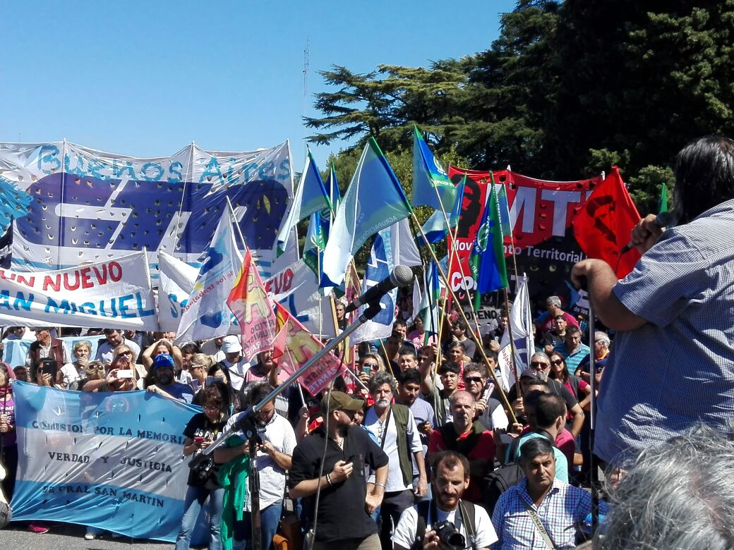 A su vez, afirmó: "Hay que reivindicar que no haya gobiernos dictatoriales, pero tenemos que resistir a las políticas que quieren aplicar hoy desde el Gobierno, teniendo a las grandes corporaciones y la Justicia de su lado como antes tenían los militares, para producir los planes de ajuste contra los trabajadores. Lo fundamental es construir la unidad absoluta del campo popular, sin grietas, porque es la única manera de poder enfrentarlos".