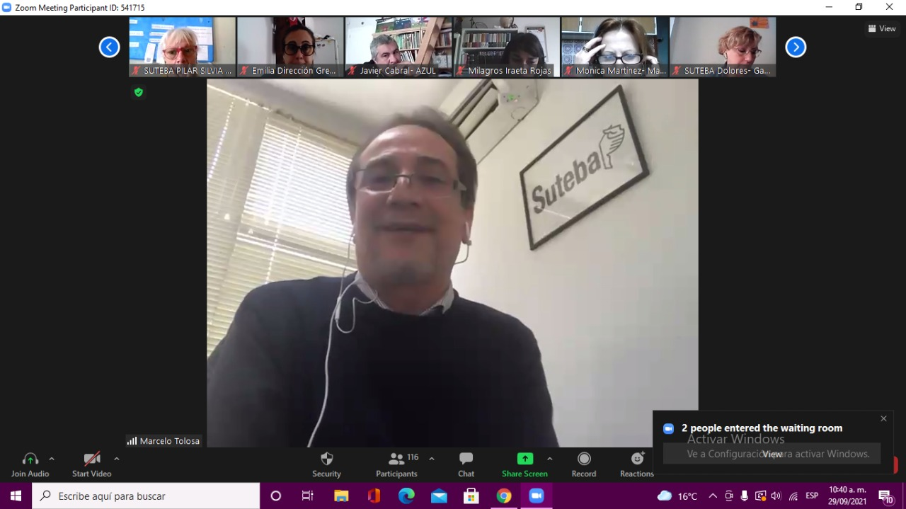 Hoy, miércoles 29 de septiembre, en el transcurso de la mañana, la Secretaría de Jubilaciones del SUTEBA Provincia realizó una jornada de capacitación con el Subdirector de Jubilaciones y Certificaciones, Nicolás Salerno. La misma contó también con la presencia de la Directora del área, Araceli Mastellone; la Secretaria Gremial del SUTEBA, Marcela Escobar; y el Director Gremial del IPS, Marcelo Tolosa, junto a su equipo.