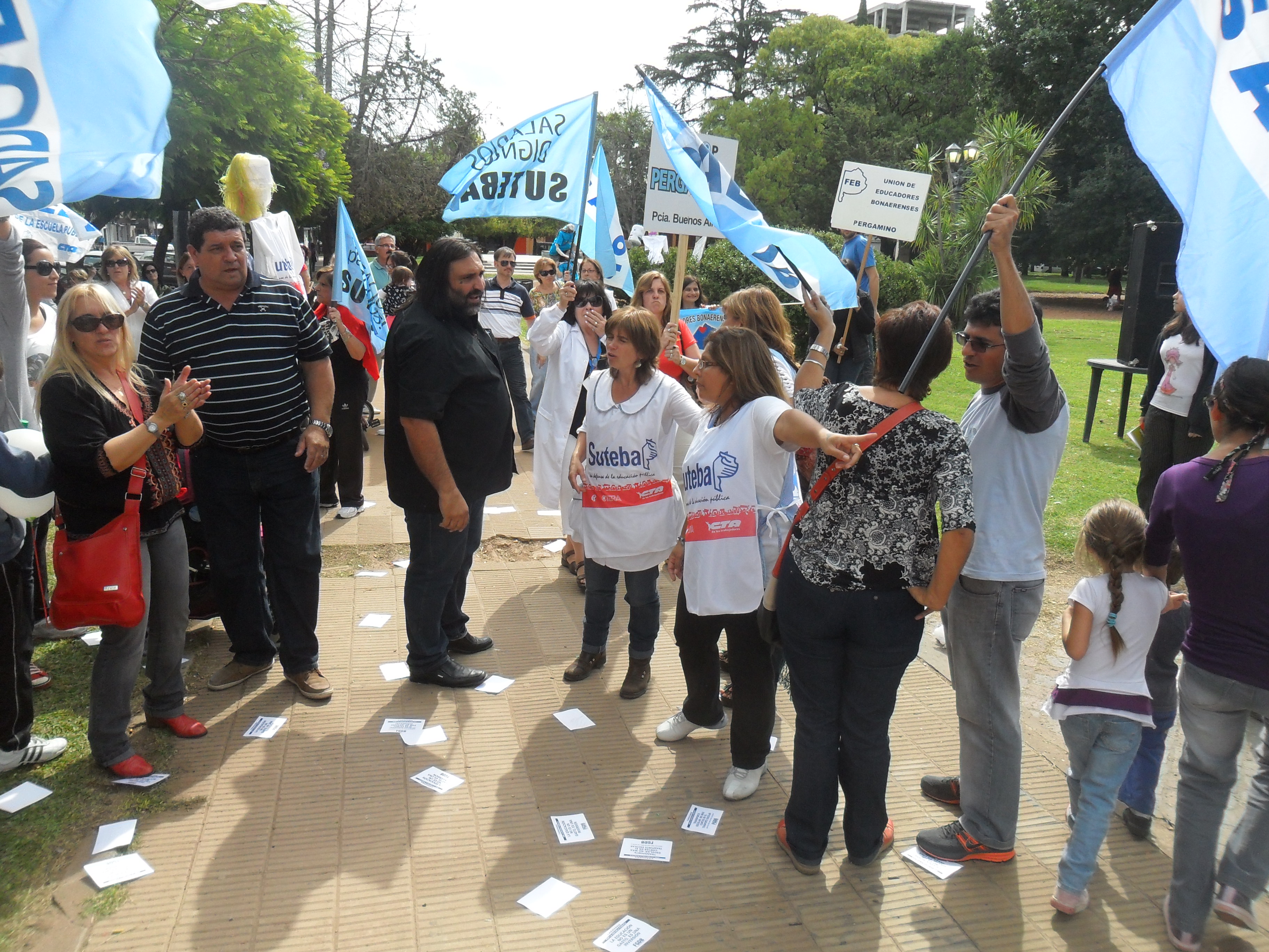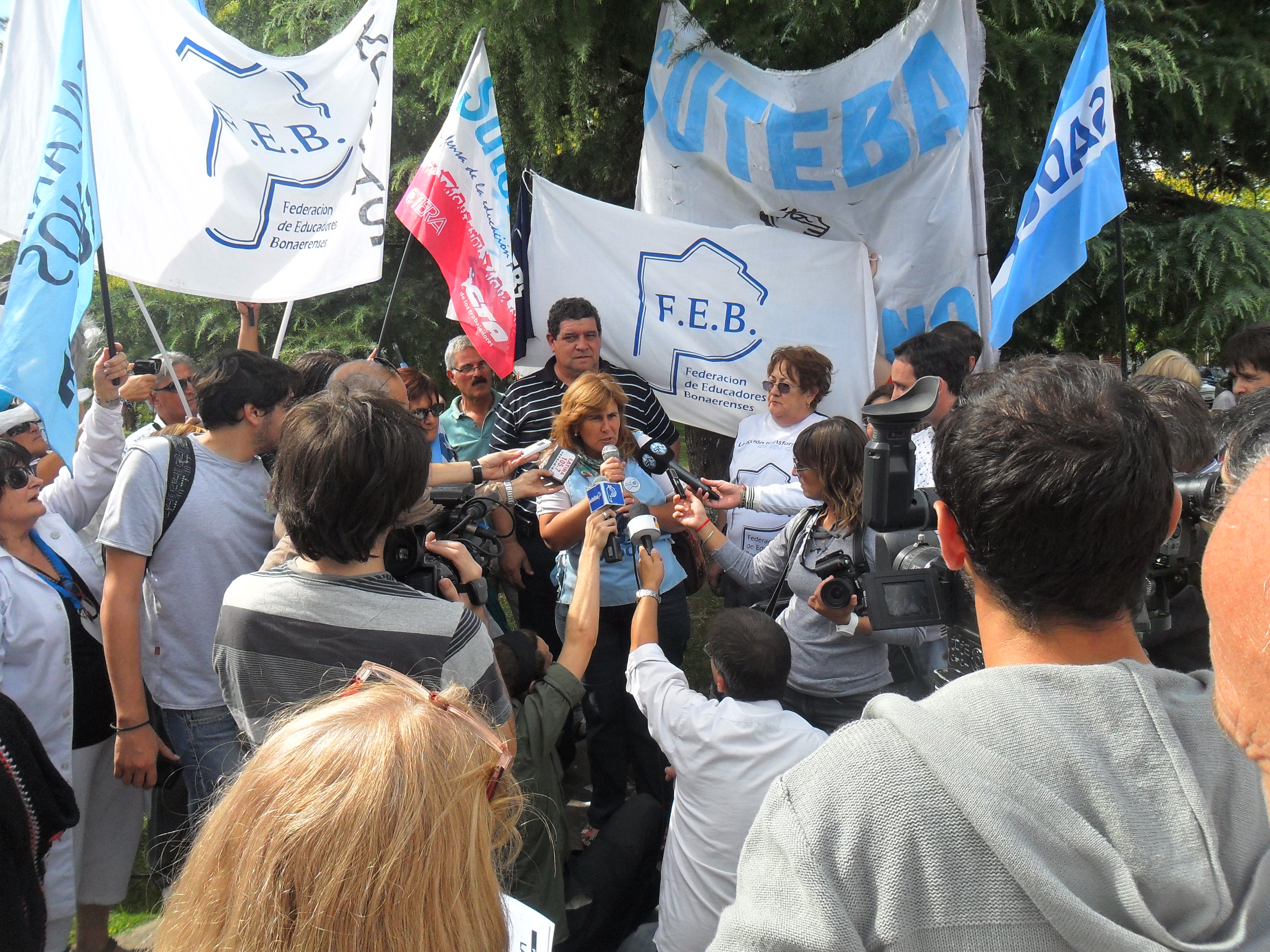 19/03/2013 La Caravana por la Escuela Pública salió desde Colón a las 13 hs, después de una conferencia de prensa en la que estuvieron presentes Vilma Alvarado, miembro del Consejo Ejecutivo Provincial de SUTEBA; Mónica Ostunes, Secretaria General de SUTEBA Colón; y representantes de FEB y SADOP.