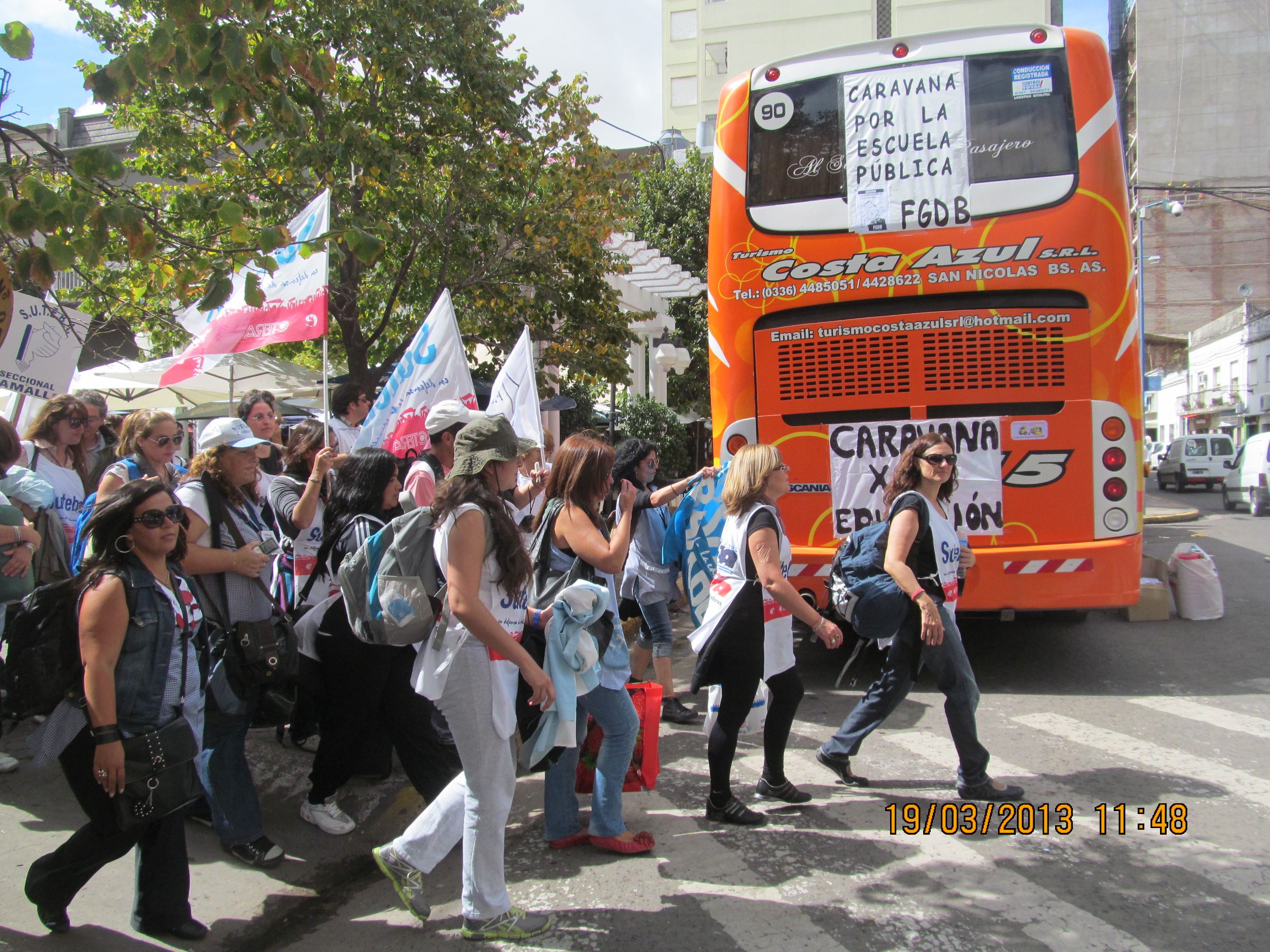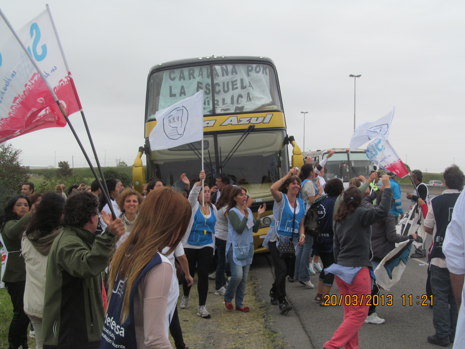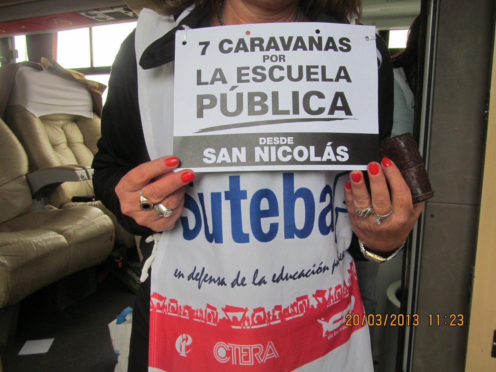 19/03/2013 El inicio en San Nicolás de la caravana que va recorriendo la ruta 9 hacia a la ciudad de La Plata, a la que arribará en el día de mañana, estuvo impregnado con la fortaleza de la unidad del conjunto de los Trabajadores de la Educación en defensa de la Escuela Pública y la mística de nuestra lucha.