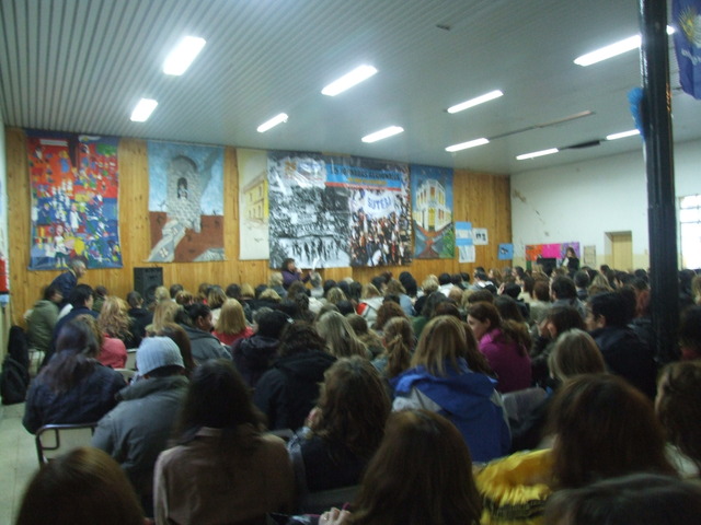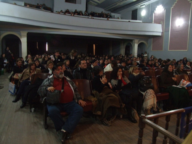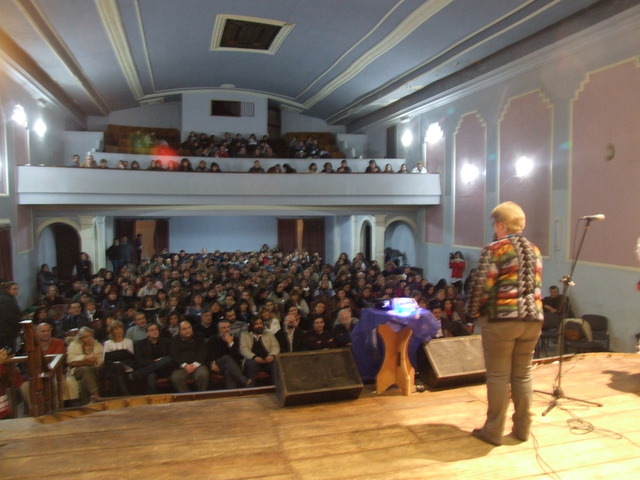 Inmediatamente, Paulón y Valdez dejaron el escenario y comenzó la exposición de Estela Diaz, quien lamentó no haber tenido en otros períodos está “unión latinoamericana como la que estamos teniendo hoy.” Habló del nuevo presidente de Perú, de la improvisada cumbre de UNASUR y la reunión de Cristina y Dilma para reguardar a la región ante la crisis económica mundial. Pero su exposición se centró en el papel y el rol de las mujeres en la sociedad y como ésta las invisibiliza, más allá de algunas conquistas en materia de derechos para las mujeres. Entonces comenzó: “Si hay algo que ha sido la gran revolución silenciosa del siglo XX es la que tuvo que ver con el protagonismo de las mujeres. Si miramos a partir de la segunda mitad del siglo XX, se produce realmente una enorme revolución silenciosa. Mujeres presidentas de la Nación, del Banco Central, la Ministra de Justicia de Bolivia, etc. Este proceso de inclusión nos hace repensar un poco más la categoría de ciudadano o ciudadana. De qué hablamos cuando hablamos de esto y pensaba en la Revolución Francesa, si hay algo que instituyó a las sociedades de las que hoy formamos parte, es el paradigma de la igualdad que proponía la Revolución Francesa. Pero en realidad, este paradigma instalaba, de base, algunas desigualdades. Igualdad refería a varones, jóvenes y blancos. Esto se condecía con las escuelas, unas para varones y otras para mujeres y que los/as preparaba para cumplir distintos roles.” Y continuó: “La sociedad sigue teniendo diferencias ‘ocultas’ entre varones y mujeres, para adultos mayores, para sectores populares o de otras etnias. Si todo esto no se pone en juego en las escuelas, entonces seguimos reproduciendo esta idea liberal, porque aún en la sociedad hay una fuerte tutela sobre los derechos de las mujeres.” Habló también de la educación sexual y de cómo los sectores más conservadores no quieren que se enseñe en las escuelas cuando “la mayoría de los abusos se dan en los hogares”, entonces “como van a hacer los niños para saber lo que les pasa y hablarlo si en las escuelas no se enseña eso”. “Uno de los grandes promotores de que se sigan sin enseñar educación sexual es Monseñor Aguer en La Plata”, se molestó Diaz.
