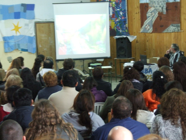 El segundo en hablar fue el Cónsul boliviano, Sixto Valdez Cueto. La misión de Sixto es ver la situación en la que se encuentran lo bolivianos en el sur de nuestro país, ya que hay muchos que se han ido de Bolivia para trabajar aquí, pero lo hacen en pésimas condiciones y quizás de forma ilegal. “Se fueron de Bolivia porque fueron expulsados de su país por un sistema que los despreció,” se entristeció el cónsul. La exposición de Sixto fue una de las más emotivas de la jornada, ya que el compañero contó la historia de su país y su historia personal hasta llegar al punto de emocionarse hasta las lágrimas. “Soy hijo de una obrera que durante más de 40 años fue explotada y no sabía leer ni escribir y cuando yo escribí mi primer libro se lo dedique y ella no lo pudo leer”, contó el boliviano y en ese momento, se le hizo un nudo en la garganta y se le vidriaron los ojos. Le costaba continuar hablando, pero todos los presentes comenzaron a aplaudir y a gritarle palabras de aliento para que el cónsul pudiera seguir compartiendo sus experiencias de vida. “Hoy muchos hermanos bolivianos vienen desde Tierra del Fuego para hacer sus papeles y me cuentan como los explotan, que no saben leer ni escribir y en ese sentido tenemos que trabajar todos, nosotros desde el consulado en conjunto con la CTA y con ustedes,” propuso Valdez. Desde el punto de vista de la comunicación, remarcó: “La profundidad de los pueblos está más allá de las capitales. No todo es lo que se ve en la televisión o en los diarios que, además, no sólo son transmisores de conocimiento, sino gestores de las conciencias de los seres humanos, desde los niños hasta los mayores.” Contó un poco la causa y el compromiso del presidente Evo Morales: “Bolivia ha sido el cuarto país que ha eliminado el analfabetismo. Y eso ha sido gracias a Evo Morales y a Venezuela. Más allá de lo que digan los medios que representan a la derecha, también ha aumentado la presencia de niños en las escuelas.” También dijo que en Bolivia “no ha habido un cambio de gobierno, sino un cambio de sistema”, pero “no con venganza, si con firmeza y con preferencia a los siempre ninguneados.” Para concluir, dijo: “El desafío de los docentes, de ustedes, es sembrar la conciencia del amor a la patria, la organización y la unión.” Al finalizar todo el salón se puso de pie para aplaudir al cónsul y agradecerle el hecho de haberse sincerado tanto.