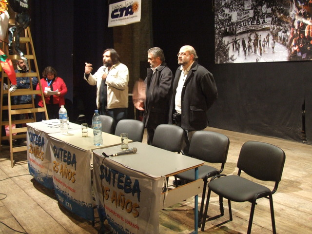 Después, retomó la palabra Roberto Baradel, y dijo: “El SUTEBA es el sindicato que está en el primer lugar de afiliados de la provincia de Buenos Aires. El 65% están afiliados a la organización sindical. Empezamos con 10 mil afiliados y ya hemos superado los 100 mil afiliados en estos 25 años.” También señaló: “Es importante pensar que la historia es una construcción colectiva y que no empieza cuando llega uno y, afortunadamente, no termina cuando uno se va. Es parte de la construcción y la lucha de miles y miles de compañeros. Si no somos conscientes de eso, nos ubican como engranajes en las políticas que definen otros y que no pisaron una escuela nunca.” Además, habló de la historia de los Blaquier y de cuando el Intendente Aredes quiso cobrarles impuesto a la empresa Ledesma desapareció, volvió a aparecer y al tiempo volvió a desaparecer y no apareció nunca más. Para finalizar, Baradel citó a Francisco Morazán Quesada (Militar y político que gobernó la República Federal de Centro América): “’La educación es el alma del pueblo y abona los ejércitos de libertad’. La creación del SUTEBA significa un ejercito de libertad para defender la educación de nuestro país y para darle el mismo derecho a todos los pibes.”