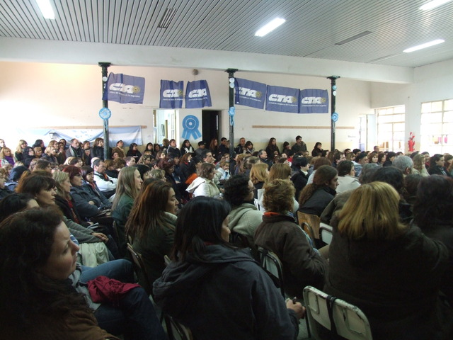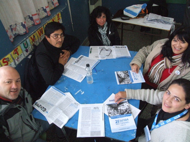 Victorio aportó al debate desde sus experiencias de vida. Dijo que la escuela pública tiene la misma edad que el movimiento sindical en la Argentina y unos y otros han tenido mucho que ver con lo que ha sucedido en nuestra historia y, fundamentalmente, con lo que ha sucedido en el mundo de los trabajadores. Luego, señaló: “El valor de lo que hemos pasado (cárceles torturas exilios) no es el sufrimiento, sino que el valor es la resistencia. Si de resistencia se trata, nosotros tenemos muchísimos ejemplos para mostrar en el conjunto de movimiento social de nuestro país, como por ejemplo Madres y Abuelas, que hicieron cosas que en otros lados no se hicieron, ni se hacen: aparición de 100 nietos, juicio a los genocidas, sentencias a cárcel común, etc.” Habló de los ’90 y dijo: “Este país había sido tomado por el menemismo con un 7% de desocupación y en su mismo período subió al 23%. Y luego, un tercio de la población excluida.” Al mismo tiempo, lo relacionó con la actualidad europea: “Hoy Europa se ha “menemizado”, hoy avanzan sobre los derechos de los trabajadores de la misma forma que avanzaron sobre los nuestros. Esto quiere decir que es algo intrínseco en el sistema capitalista. Y los sindicatos siguen siendo la herramienta principal que tienen los trabajadores a estas políticas.” Celebró el encuentro y concluyó: “Hay que aprovechar a fondo estos espacios de reflexión, ojalá todos los sindicatos en la Argentina tuvieran la posibilidad de reunir a sus bases para hacer estos debates que tienen que ver con la formación, pero que también tienen que ver con la creación de consciencia colectiva de ustedes, los trabajadores de la educación. Para que se involucren cada vez más con su destino colectivo.”