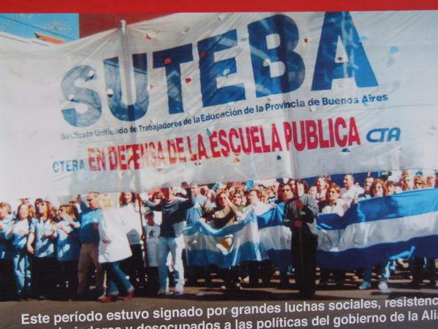 El último en exponer fue Héctor Gonzalez: “Históricamente nuestro trabajo estuvo muy marcado por otras miradas, construidas en los escritorios de los funcionarios, en los escritorios de las academias, incluso en ciertos medios hegemónicos o en organizaciones empresariales u organizaciones que están financiadas por los sectores de poder. Por eso, la propuesta de CTERA y SUTEBA fue construir una mirada nuestra sobre nuestro trabajo, para evitar quedar atrapado o colonizado por esas otras miradas.” Para dar un ejemplo de esto que decía, Gonzalez habló de las pruebas PISA: “Aferrarse a las pruebas PISA para referirse a la mala calidad, es para tratar de instalar y legitimar la idea de que nuestro trabajo (el trabajo docente) es fácil y solamente evaluable a través de los resultados de nuestros alumnos. En esta idea, subyace otra idea más sutil que es la idea de reducir la educación a la tarea que realiza el docente con el alumno. Esta reducción de la educación tiene importantes consecuencias, porque invisibiliza, en primer lugar, todo nuestro proceso de trabajo que realizamos cuando no estamos frente a los alumnos (nuestro trabajo tiene un proceso antes y después de estar con los alumnos). Como está invisibilizado no se nos lo reconoce y no se nos lo paga. Además al reducir esa relación, se invisibiliza también todas las otras relaciones de trabajo que tenemos que hacer (trabajo con los otros docentes, con los padres, etc.) para que efectivamente esa porción de trabajo que hacemos con los alumnos se puedan realizar. La tercera, es que todas las responsabilidades sobre lo que suceda o no, en esa relación queda circunscripta a los integrantes de esa relación. Entonces si no hay buena enseñanza en el aula, la responsabilidad es de los alumnos o del mal desempeño del docente y quedan invisibilizadas todas las otras responsabilidades que están incidiendo en lo que se produce ahí: las políticas educativas, las gestiones, los estamentos del sistema educativo, etc.” Y planteó algunas posibles soluciones: “Para que la escuela pueda llevar adelante un trabajo colectivo de tal complejidad, no basta con el hacer ni la voluntad de los que trabajamos en ellas. Necesita muchas condiciones, pero una imprescindible es tener de un conocimiento lo más específico y preciso posible acerca de esos sujetos concretos con los cuales nosotros cotidianamente trabajamos. Un conocimiento acerca de esas situaciones áulicas. Ese conocimiento necesita una organización escolar que garantice espacios, tiempos y recursos para que los docentes se puedan juntar a debatir, intercambiar y compartir. Necesitamos que la jornada laboral contemple tiempos de trabajo sin los alumnos y abarque el trabajo colectivo.” Finalmente, se despidió: “Debemos entrar al aula convencidos de que es un espacio de producción de conocimiento y de producción cultural. El aula no es el lugar donde se bajan contenidos. Es el lugar donde debemos generar procesos de creación de contenidos.”