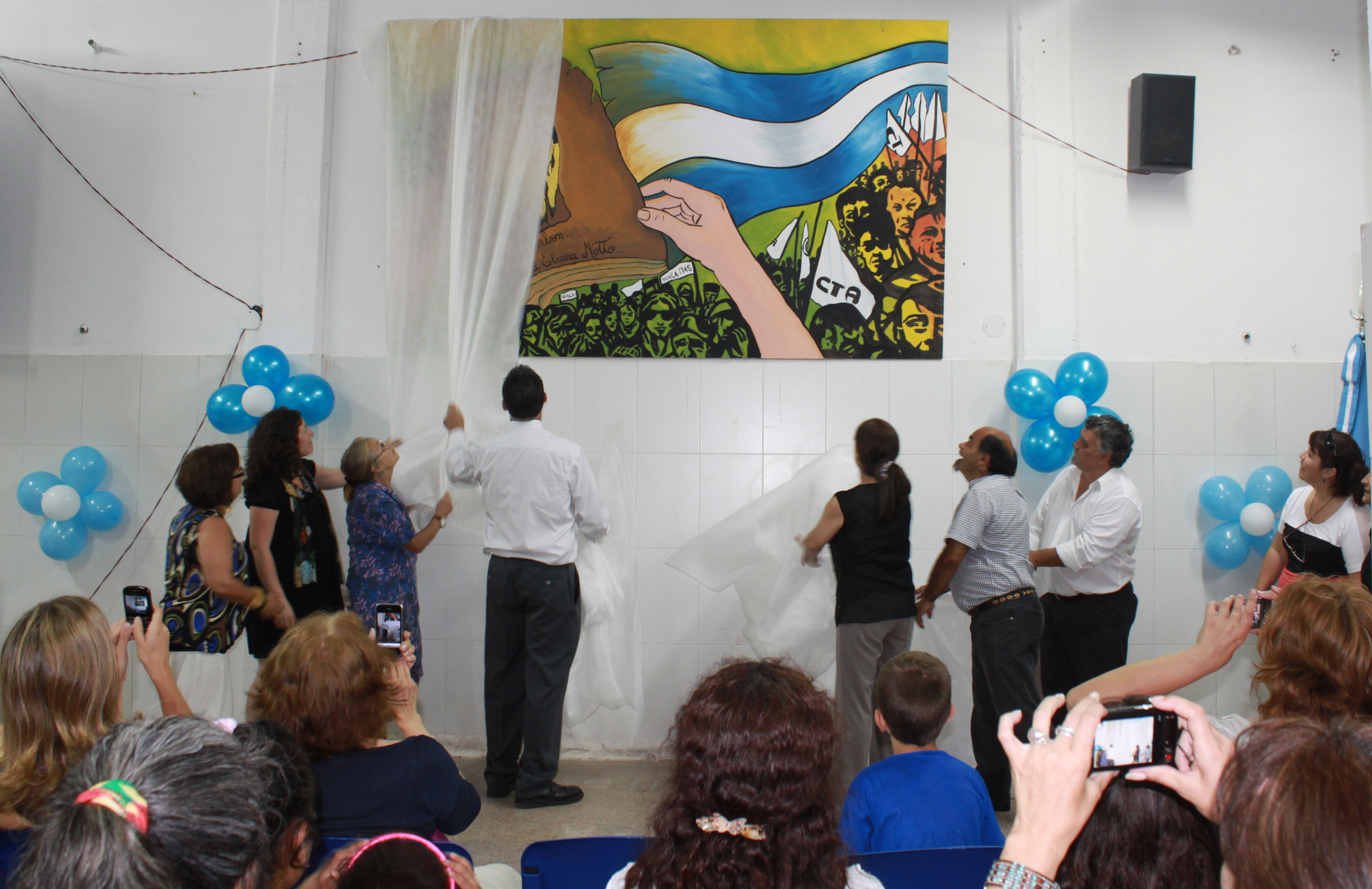 Al terminar el mismo, se descubrió; con la ayuda de Natalia, Numa Loza, la Inspectora de formación profesional y el Jefe distrital de Inspectores; un mural realizado por el grupo “Colectivo Mural” integrado por docentes de la escuela de estética de Malvinas.