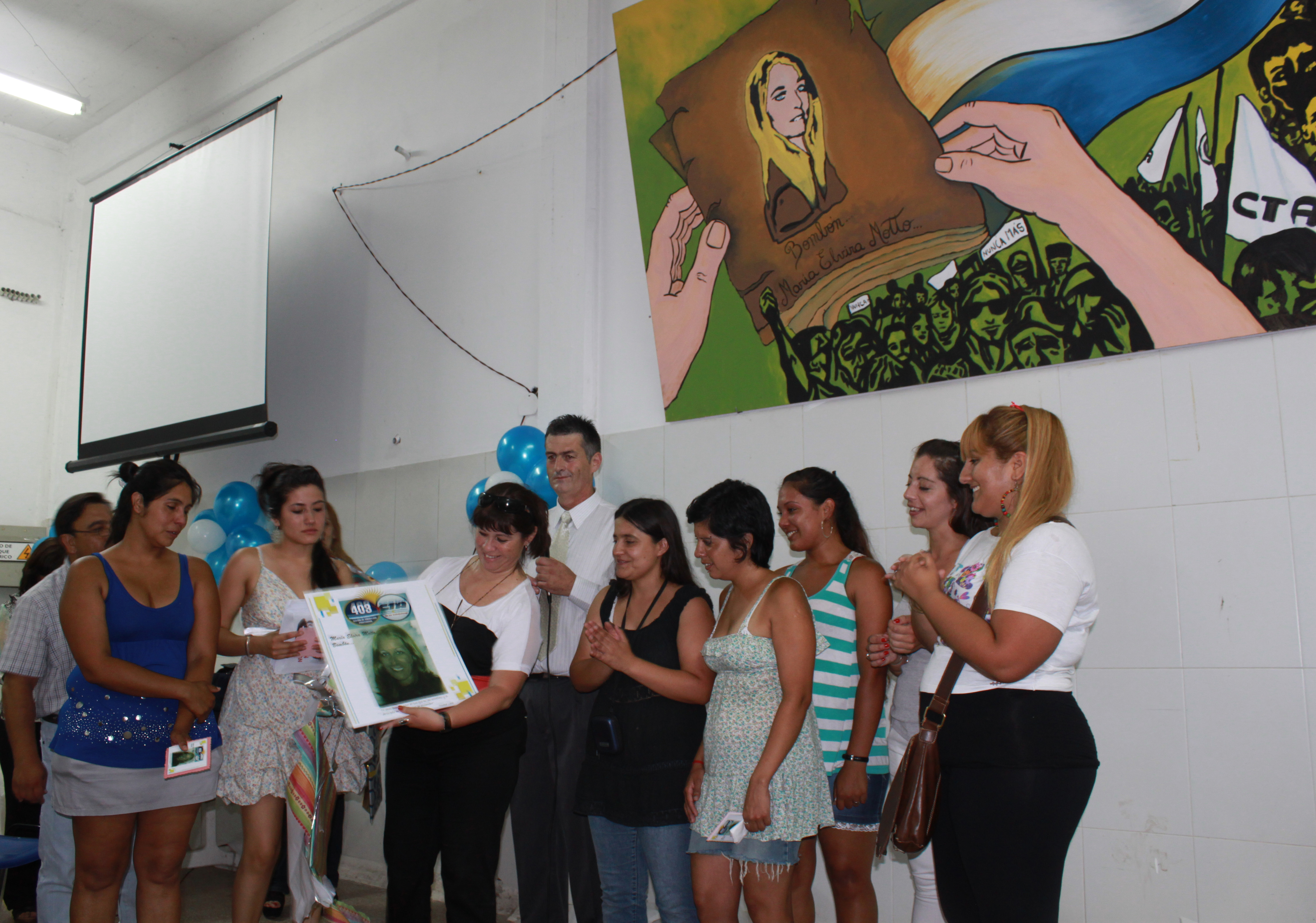 12/12/12 En un marco de alegría, el miércoles 12 de diciembre, se avanzó en la elección del nombre para el centro de formación, y el elegido fue “María Elvira Bombón Motto”, maestra desaparecida que trabajo en la Ex escuela Nº38 de José C. Paz. Estuvieron presentes más de 400 personas entre alumnos, compañeros de todas las organizaciones de la Central (que trabajaron mucho en la Organización y el Bufete a beneficio de la Cooperadora), autoridades escolares y municipales, representantes de Organizaciones y Universidades de la Región, y compañeros de las Seccionales vecinas de SUTEBA (Pilar, Tigre y Vicente López).