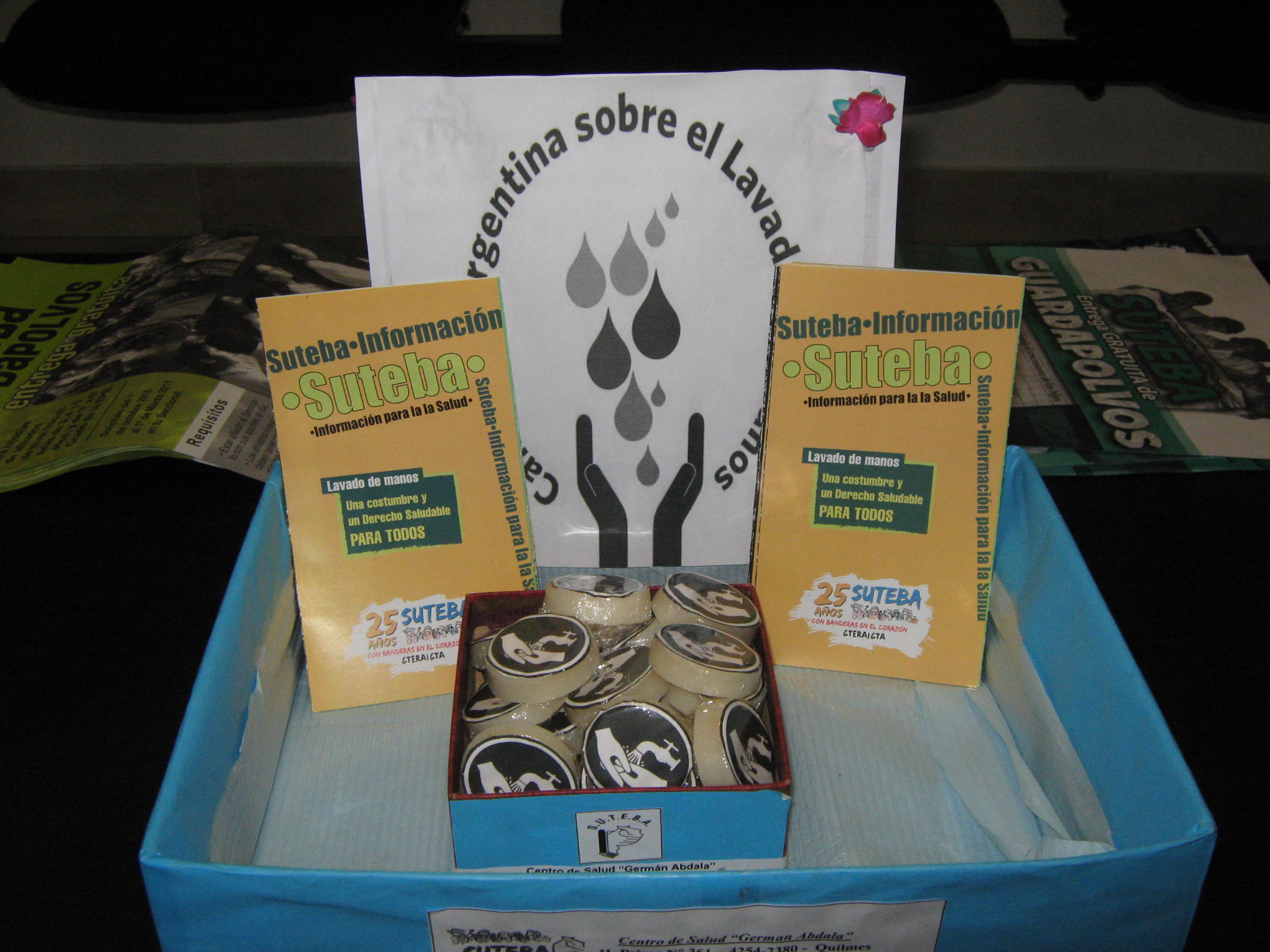Las acciones consistieron en el armado de carteleras informativas sobre la importancia del lavado de manos; carteles sobre la celebración que fueron colocados en los sanitarios del CAP; se entregaron a los pacientes folletos de SUTEBA sobre el lavado de manos, junto a un jabón de glicerina alusión a la fecha.