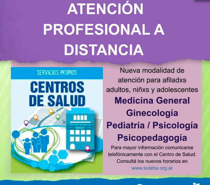 Debido al Aislamiento Social, Preventivo y Obligatorio por el COVID-19, ofrecemos Atención Médica a Distancia en Medicina General, Ginecología, Pediatría, Psicología y Psicopedagogía. Comunicate por teléfono con el Centro de Salud más cercano para solicitar la consulta.