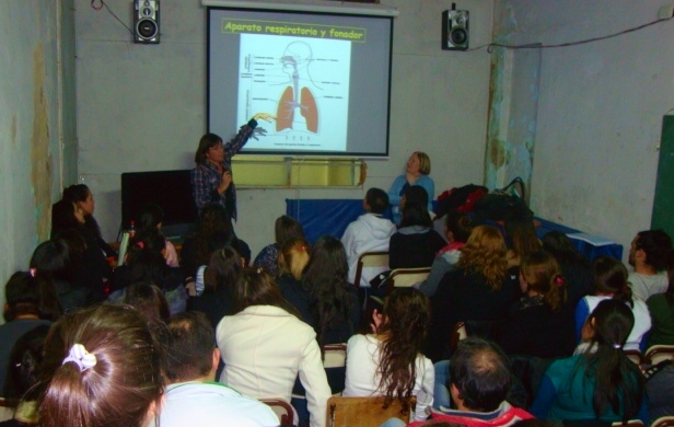 La jornada estuvo organizada en tres charlas – talleres con alumnos de 4º año del ISFD N° 113, establecimiento integrante de la Unidad Académica de la Escuela Normal Superior EE.UU. de América. Los especialistas de SUTEBA brindaron información del aparato fonador y de las enfermedades relacionadas con los problemas de la voz. Desde la parte práctica, se realizaron ejercicios de respiración.