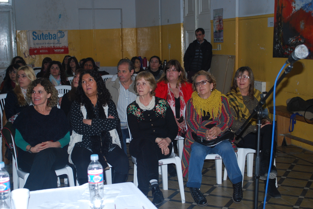La apertura del encuentro estuvo a cargo del reconocido cantautor local Marcelo Ferrer. Luego del número musical, las compañeras María Reigada, Secretaria de DDHH de CTA Provincia de Buenos Aires, y Patricia Romero Díaz, Subsecretaria de DDHH del Consejo Ejecutivo Provincial del SUTEBA, fueron las oradoras que brindaron el enfoque político, económico, social, cultural y pedagógico de la jornada.