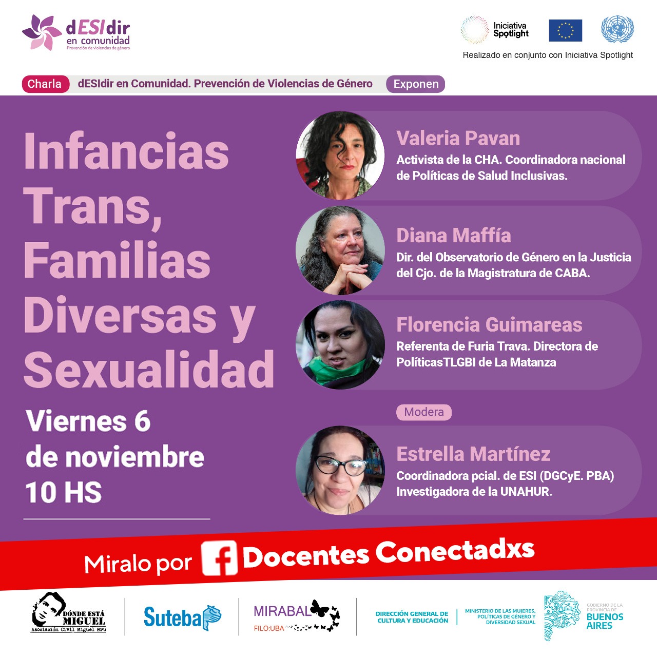 Este viernes 6 de noviembre a las 10 hs, lxs invitamos a la charla "Infancias Trans, familias diversas y sexualidad" donde expondrán Valeria Pavan, Diana Maffía y Florencia Guimareas; con Estrella Martínez como moderadora.