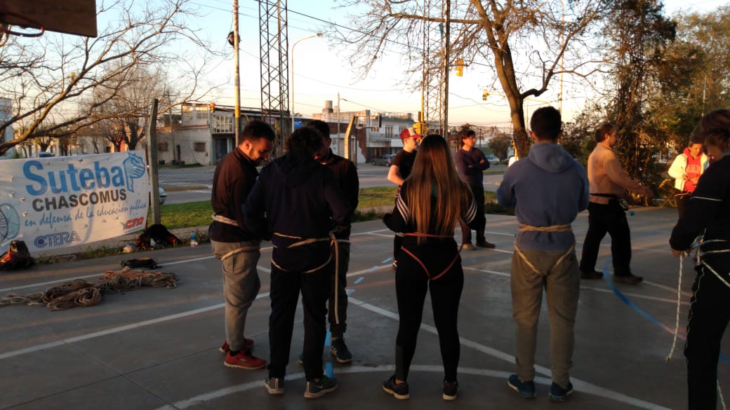 El miércoles 18 de septiembre se realizó, en el ISFD N° 98 de Chascomús, la capacitación de la Escuela de Montaña del SUTEBA: "Técnicas de montañismo aplicadas al juego".