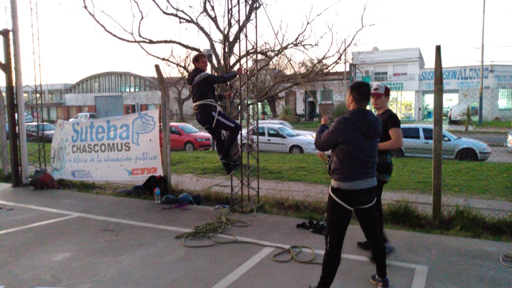 El miércoles 18 de septiembre se realizó, en el ISFD N° 98 de Chascomús, la capacitación de la Escuela de Montaña del SUTEBA: "Técnicas de montañismo aplicadas al juego".