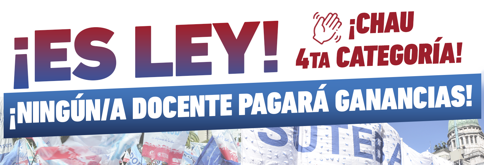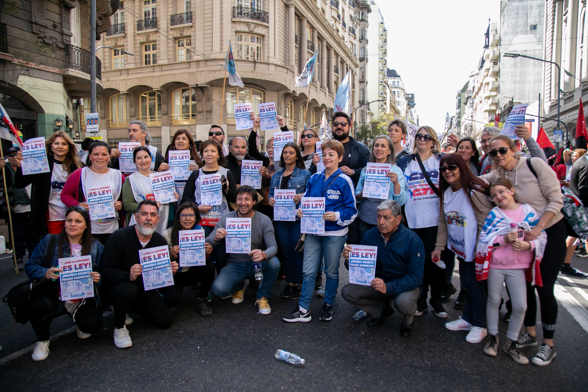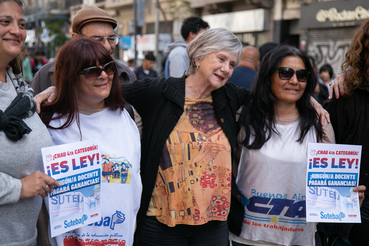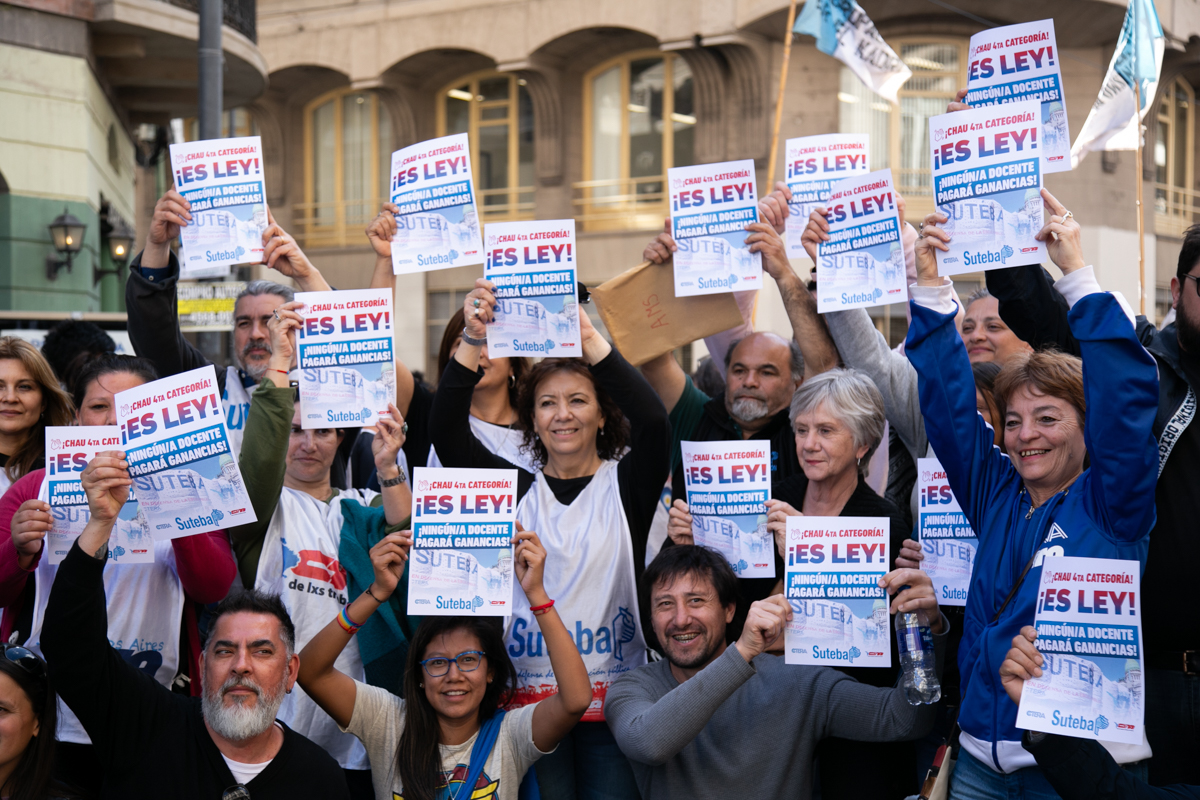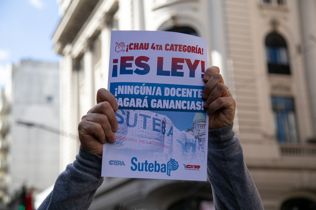 El SUTEBA se movilizó esta tarde al Congreso Nacional, junto a la CTERA, la CTA-T y el resto de las centrales sindicales, para expresar un fuerte reconocimiento al gran avance que significa la eliminación de la cuarta categoría del Impuesto a las Ganancias, conquista que claramente lleva las huellas de nuestras luchas.