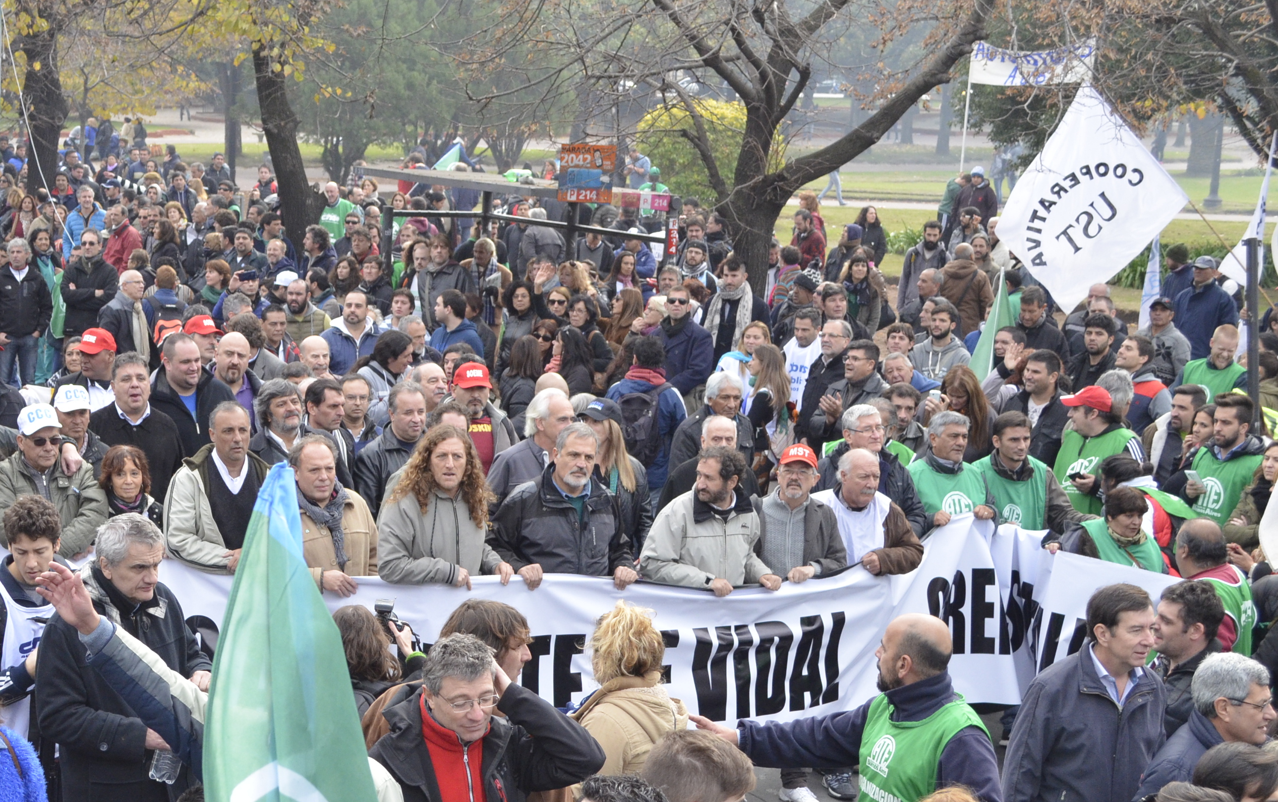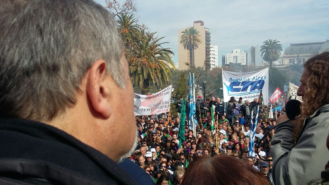 Con más de 50.000 trabajadores encolumnados, Raúl Calamante, Secretario Adjunto de la CTA provincia de Buenos Aires y Secretario de Interior del SUTEBA, resaltó el compromiso de luchar contra las medidas de ajuste que vulneran fuertemente el Derecho de los trabajadores y sus familias y señaló: "Esta movilización es una señal muy clara de la unidad de la clase trabajadora, que demuestra la voluntad firme de rechazar la política de ajuste que se está implementando en la provincia y que arrasa con los derechos, no sólo de los trabajadores, sino también de sus familias". Se refirió a la gobernación planteando que "No saben lo que es la Escuela Pública. No le conocen la cara a las necesidades del pueblo trabajador bonaerense".