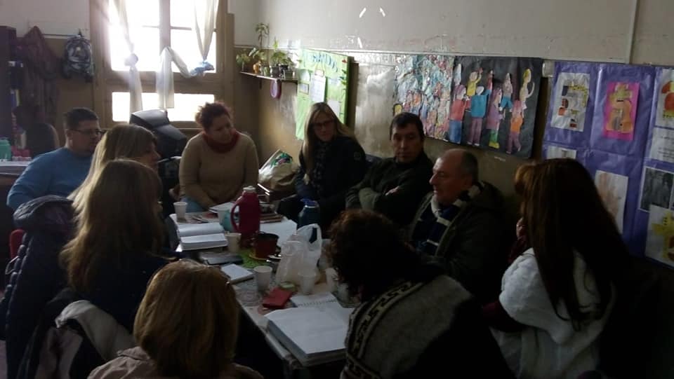 Reunión del Comité Mixto Distrital de Salud y Seguridad de Lanús, organizando capacitaciones para Equipos Directivos, Docentes y Auxiliares, en el marco del Plan de Prevención de Riesgo:
