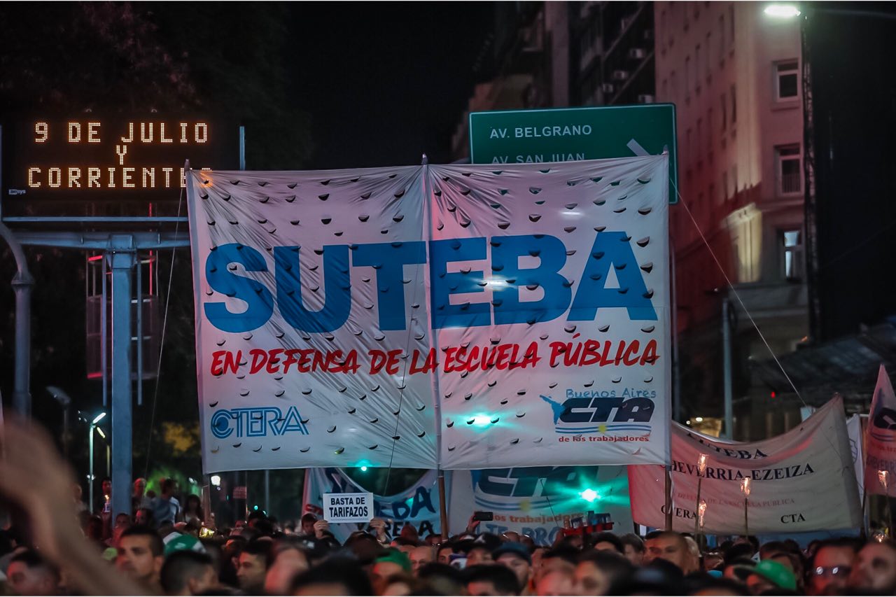 Por su parte, el Secretario General del SUTEBA, Roberto Baradel, compartió: "Estamos repudiando el tarifazo y reclamándole al Gobierno que tiene que volver atrás con ellos. Además, fue una vergüenza lo que sucedió el miércoles en Diputados porque los funcionarios del Gobierno no dieron quórum para debatir. Estos son tarifazos brutales, que con el 15% en 3 cuotas que nos ofrecen en las paritarias se hace insostenible para lxs trabajadorxs, para los sectores más humildes y para los sectores productivos de este país".