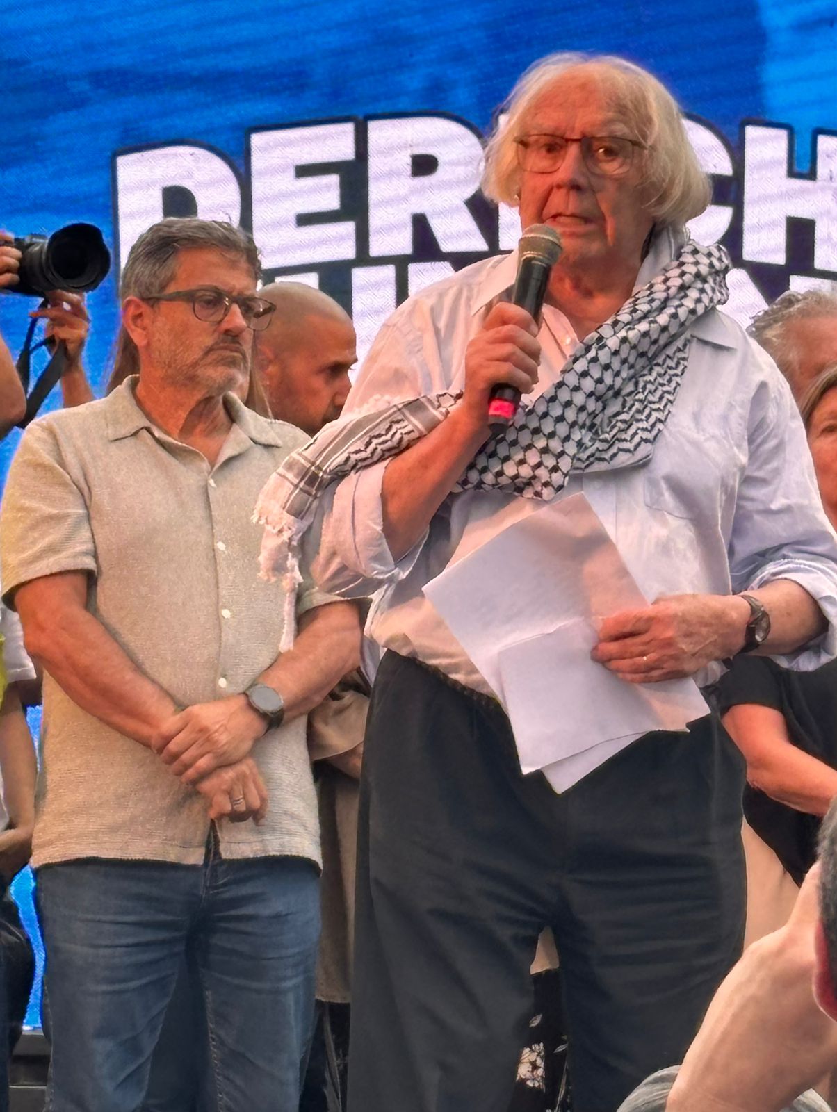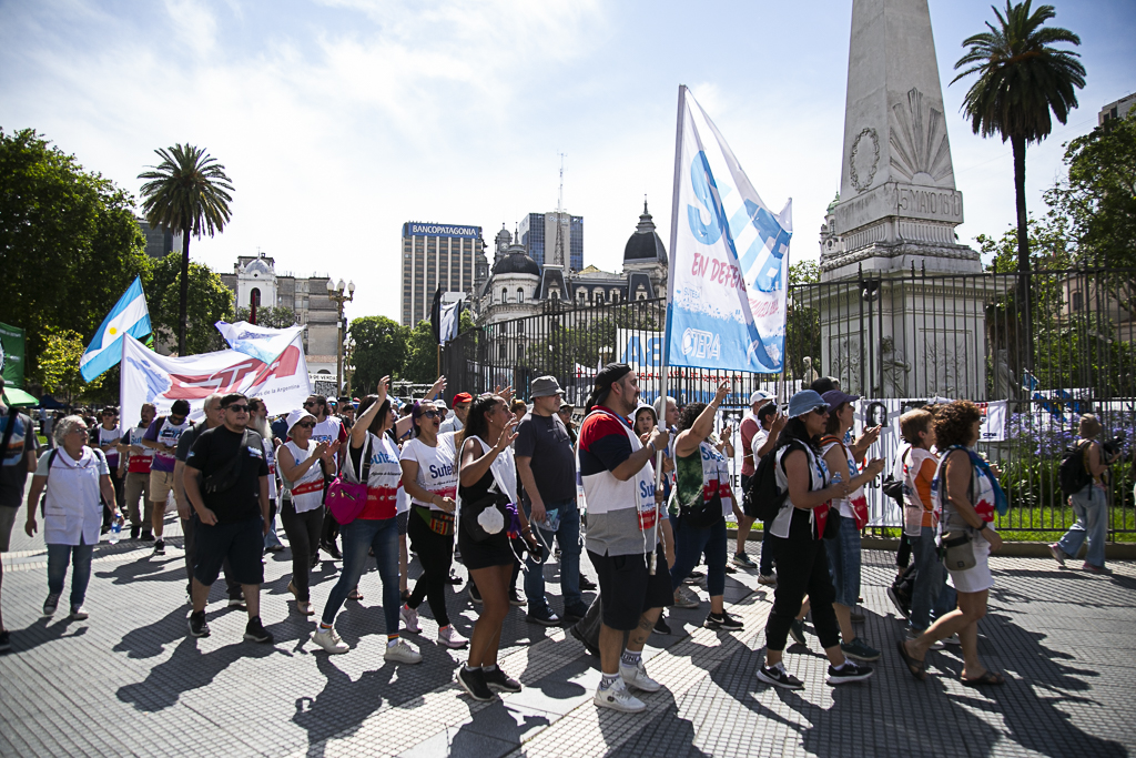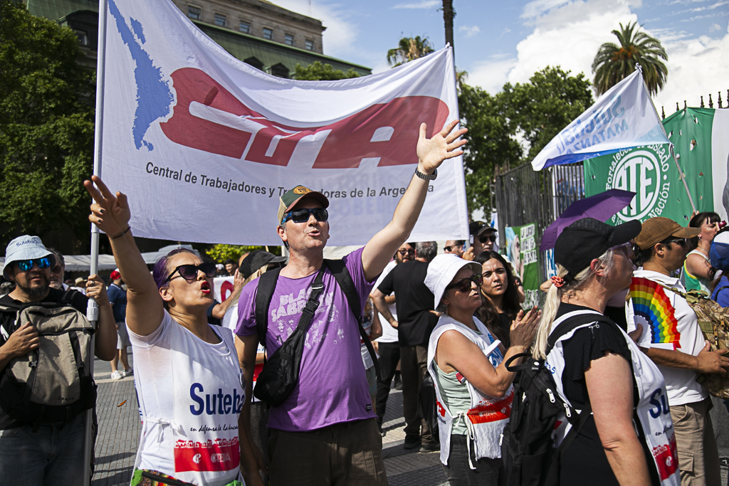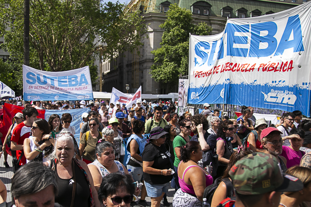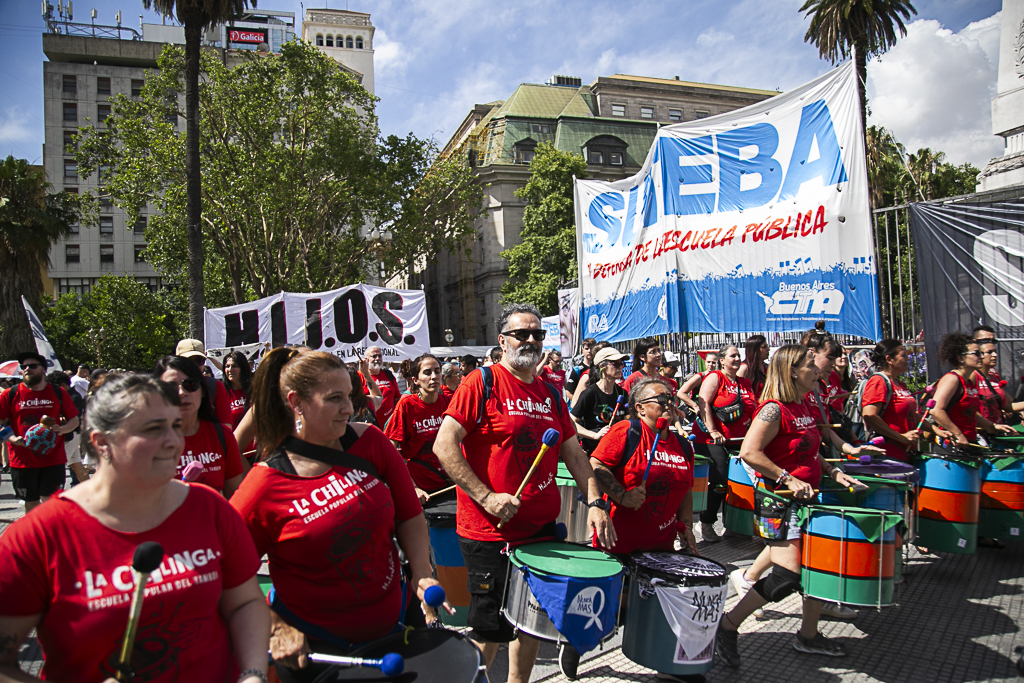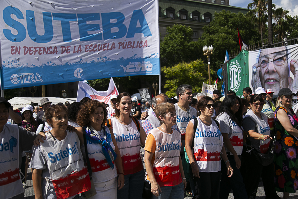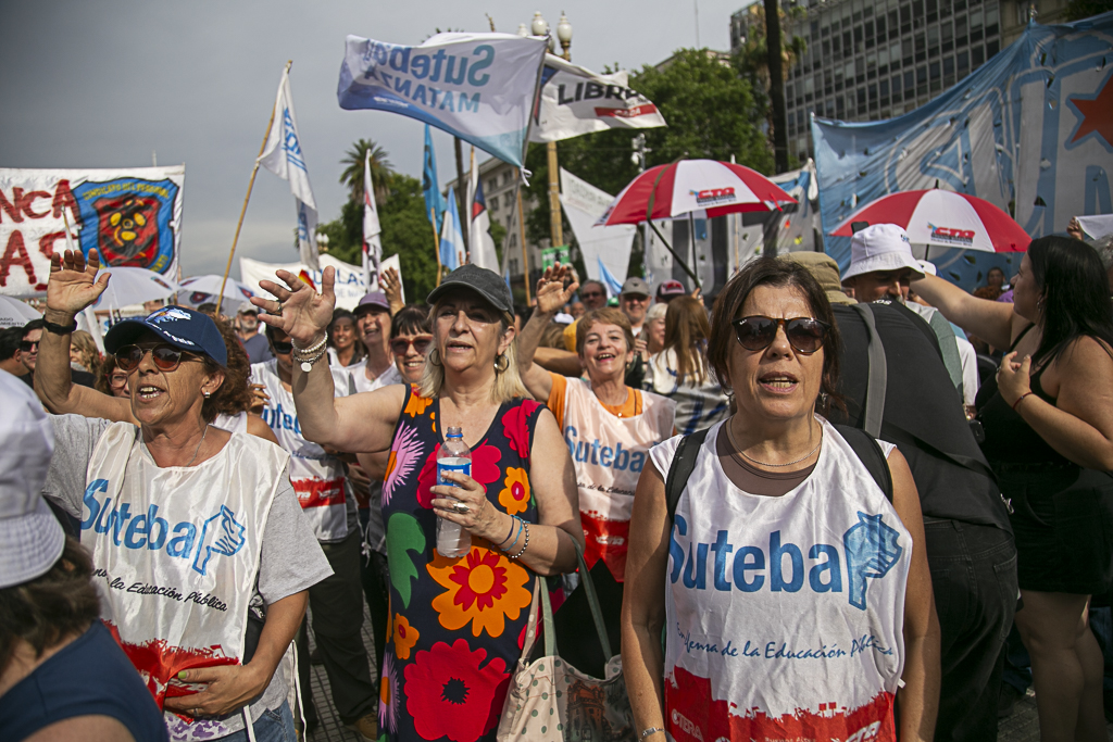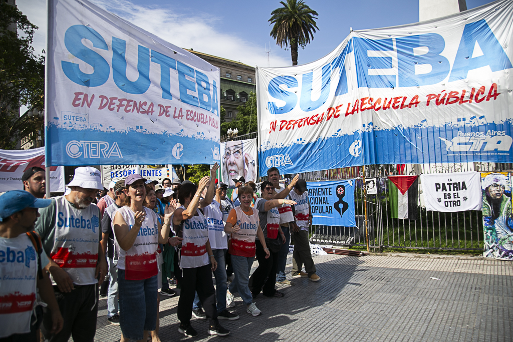 El SUTEBA participó ayer del multitudinario evento "Derechos Humanos en Movimiento", convocado por Madres y Abuelas de Plaza de Mayo, HIJOS y diversos Organismos de DD.HH, Organizaciones Sindicales, políticas y sociales. En el marco del Día Internacional de los Derechos Humanos, a 42 años de la recuperación de la Democracia y a dos años del inicio del Gobierno negacionista de Milei, estuvimos en la Plaza levantando una vez más las banderas de Memoria, Verdad y Justicia.