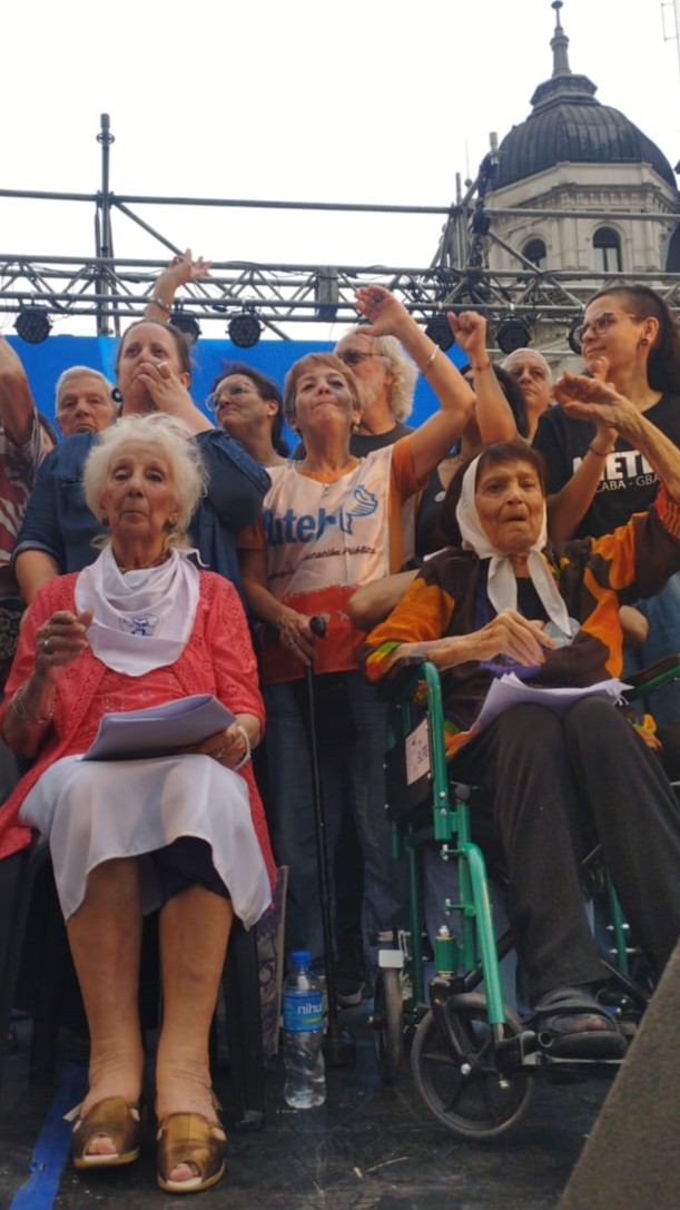 "Como Trabajadorxs de la Educación, como CTERA, volvemos a decir PRESENTE, reafirmando la Democracia, en el camino que nos marcaron siempre las Madres y las Abuelas de Plaza de Mayo".