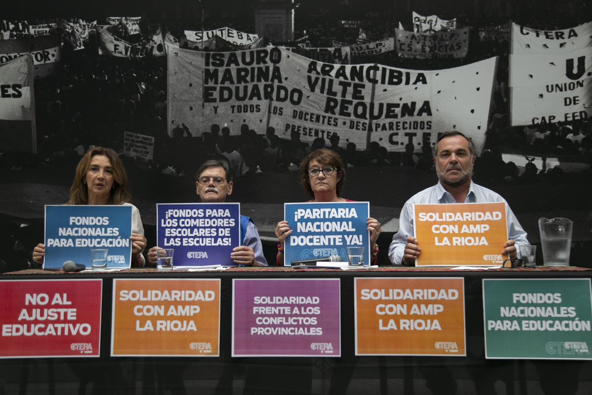En el marco de la Jornada Nacional de Protesta en todo el país, la CTERA llevó adelante una conferencia de prensa para denunciar el accionar del Gobierno Nacional respecto a la Educación Pública.