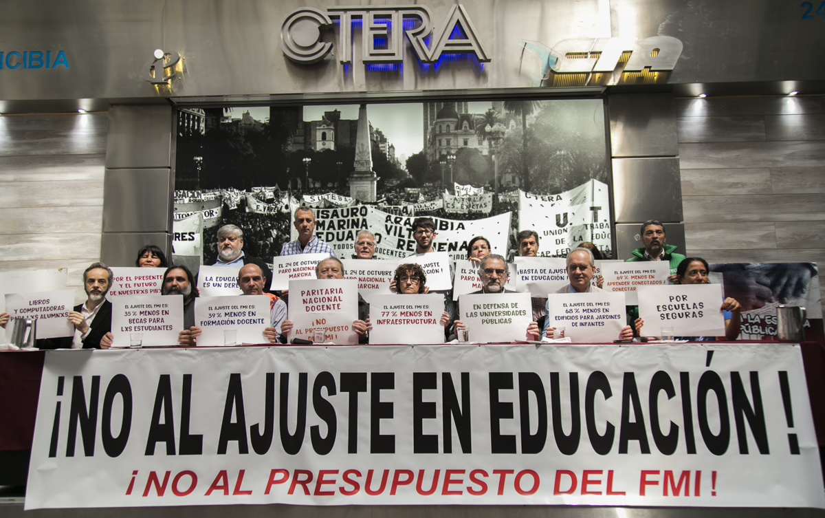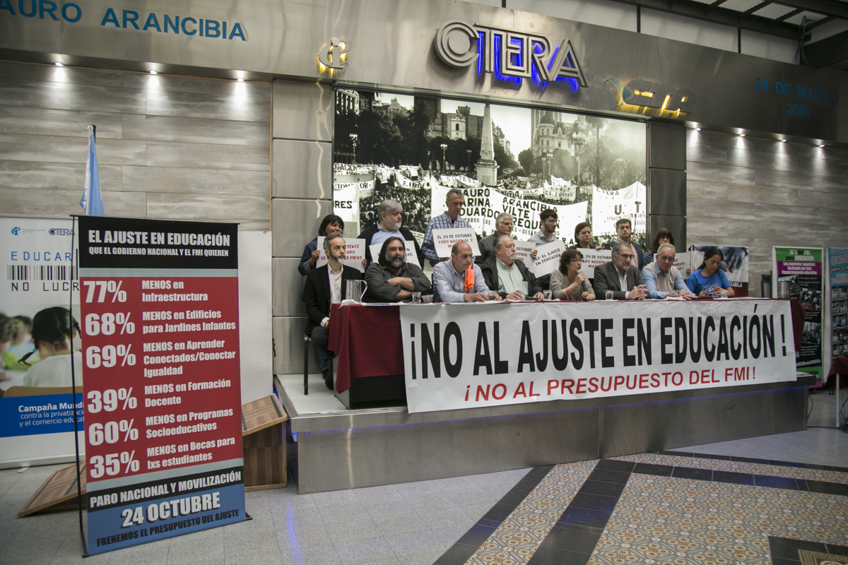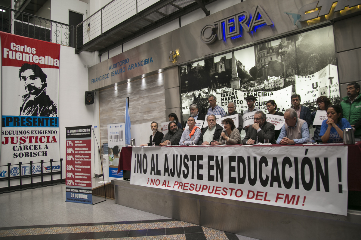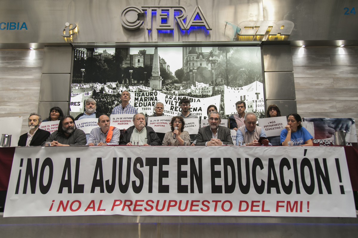 Se realizó en CTERA la conferencia de prensa de los Sindicatos Docentes que mañana convocan a un Paro Nacional Docente en contra del Presupuesto Educativo del ajuste y el FMI. De la conferencia participaron CTERA, CONADU, SADOP, FAGDUT, FATUN y FEDUN.