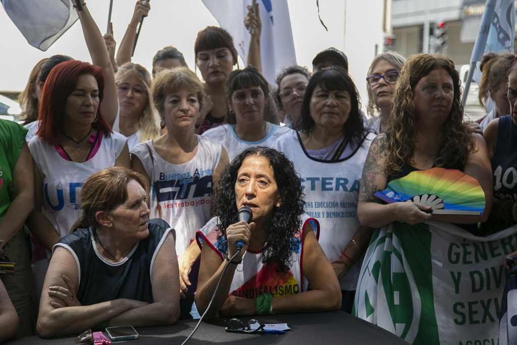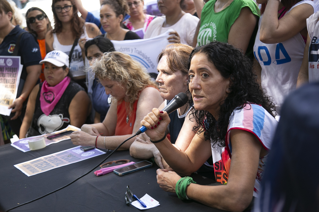 Al tomar la palabra, Socolovsky subrayó: "Le decimos basta al Gobierno de Milei y a su proyecto político y económico, que venimos denunciando desde el primer día. Denunciamos que el proceso de ajuste al servicio de la concentración económica se agrava notoriamente estos días con despidos masivos y una política de miseria y angustia despiadadas. Las organizaciones sindicales, feministas y transfeministas son y han sido en nuestro país una fuerza democratizadora, capaz de impulsar la conquista de derechos que nos han enorgullecido y que estamos aquí para defender. Por eso siempre y mucho más atacan a las mujeres, diversidades y sectores populares. Existe una brecha que el Gobierno de Milei continúa profundizando".