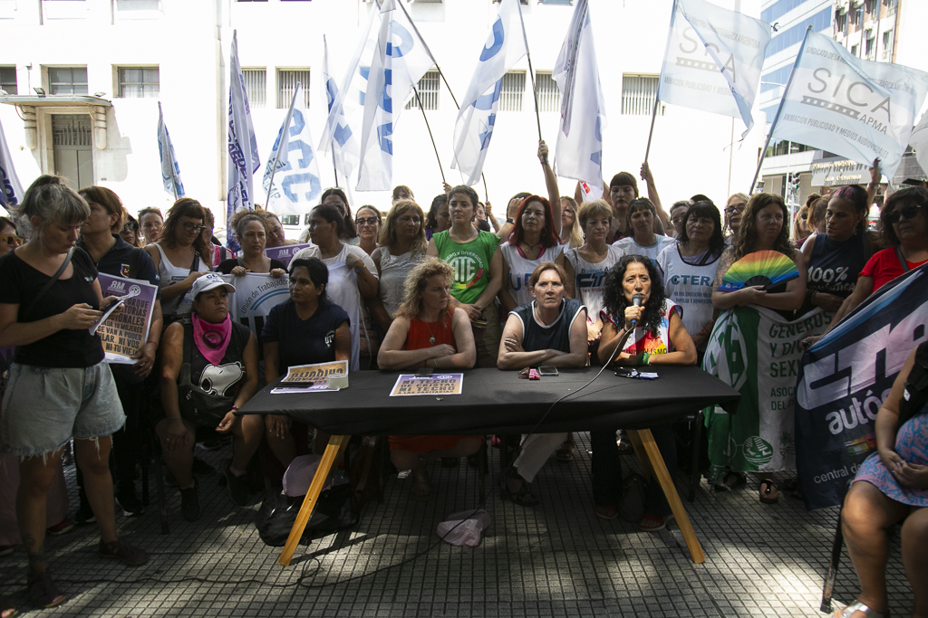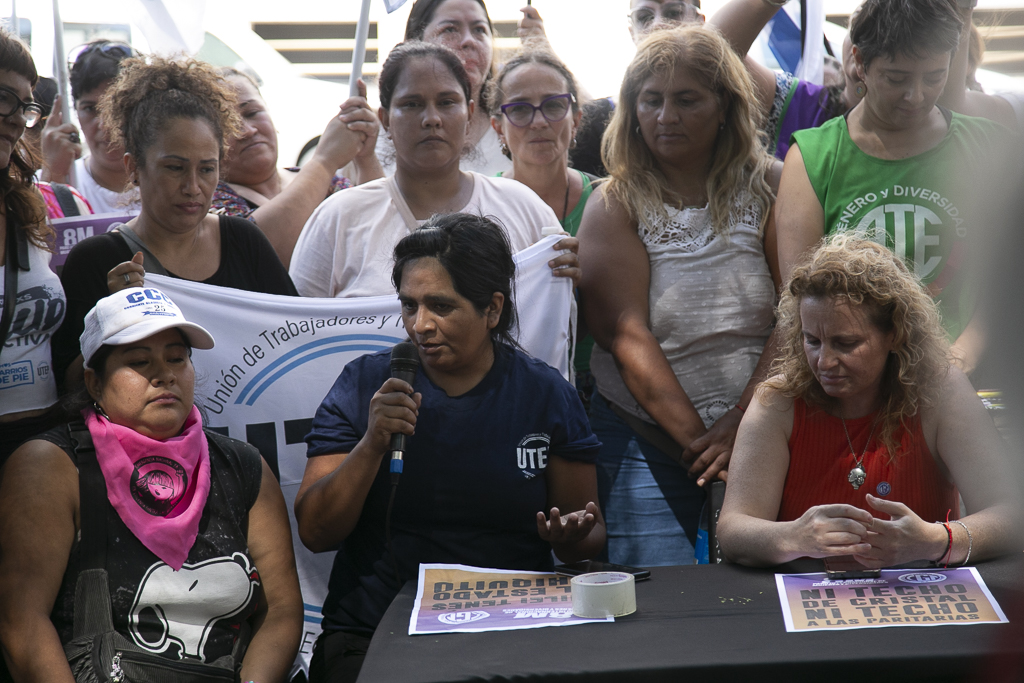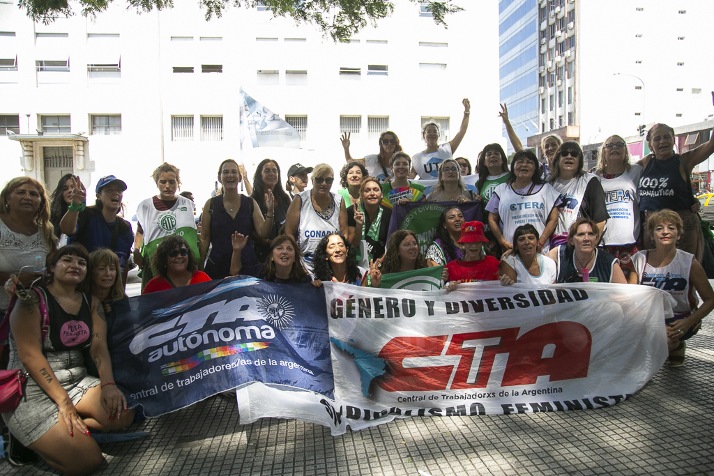 En la mesa, tomaron la palabra: Yamile Socolovsky por la CTA-T; Norma Morales por la UTEP; Cynthia Medina de la CCC; Leonor Cruz de la CTA-A; y Maia Volcovinsky por la CGT. La presentadora fue Micaela Polak, de Sipreba.