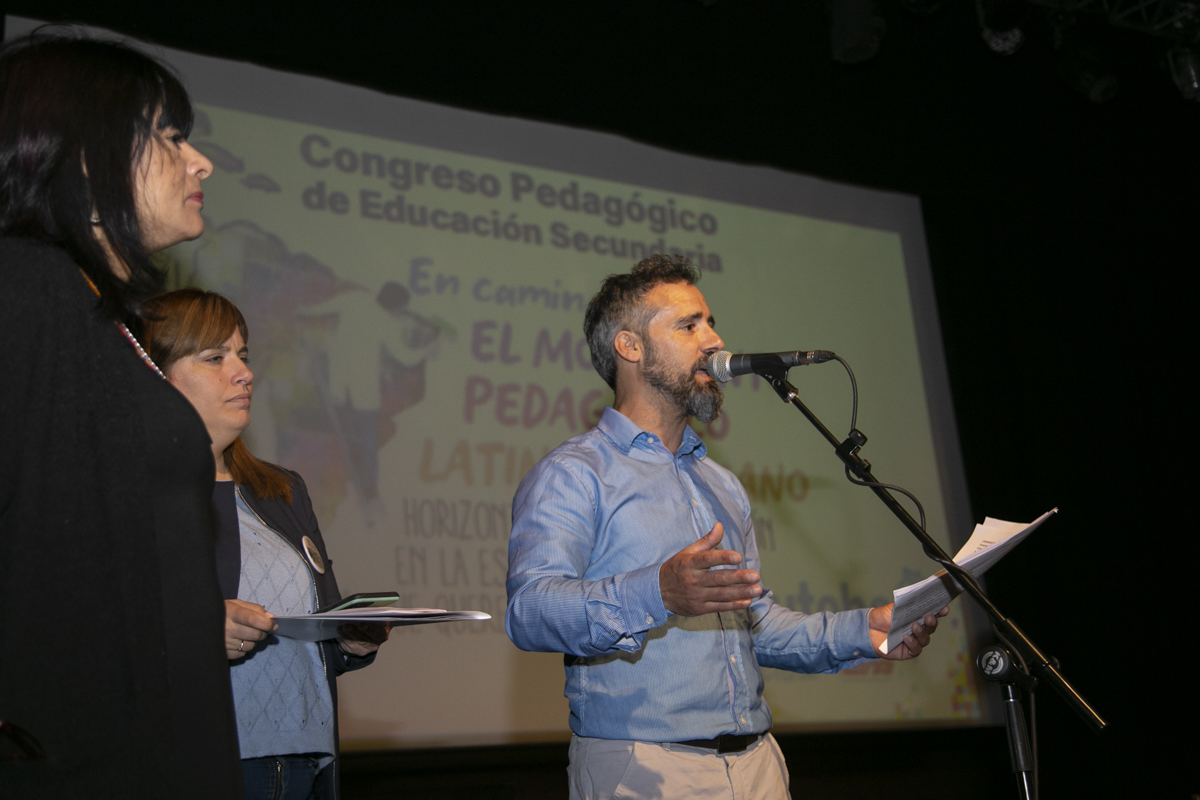 "Y el desafío fundamental que nos proponemos es para toda América Latina, en el marco del Movimiento Pedagógico Latinoamericano, en la perspectiva de la Educación Secundaria que queremos y que necesitamos para fortalecer los procesos emancipatorios y populares, en América Latina, en la Argentina y en la provincia de Buenos Aires", agregó Almazán.