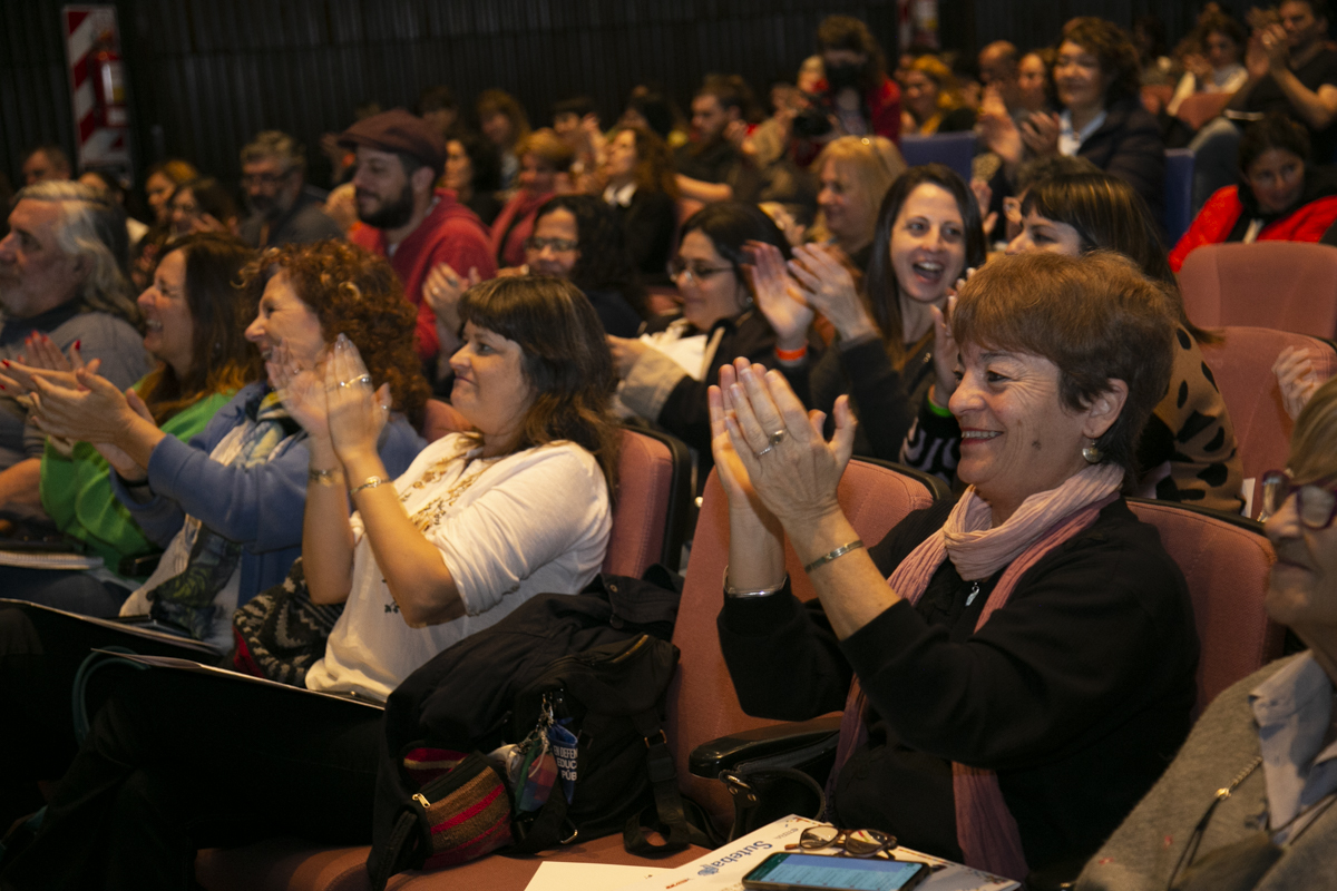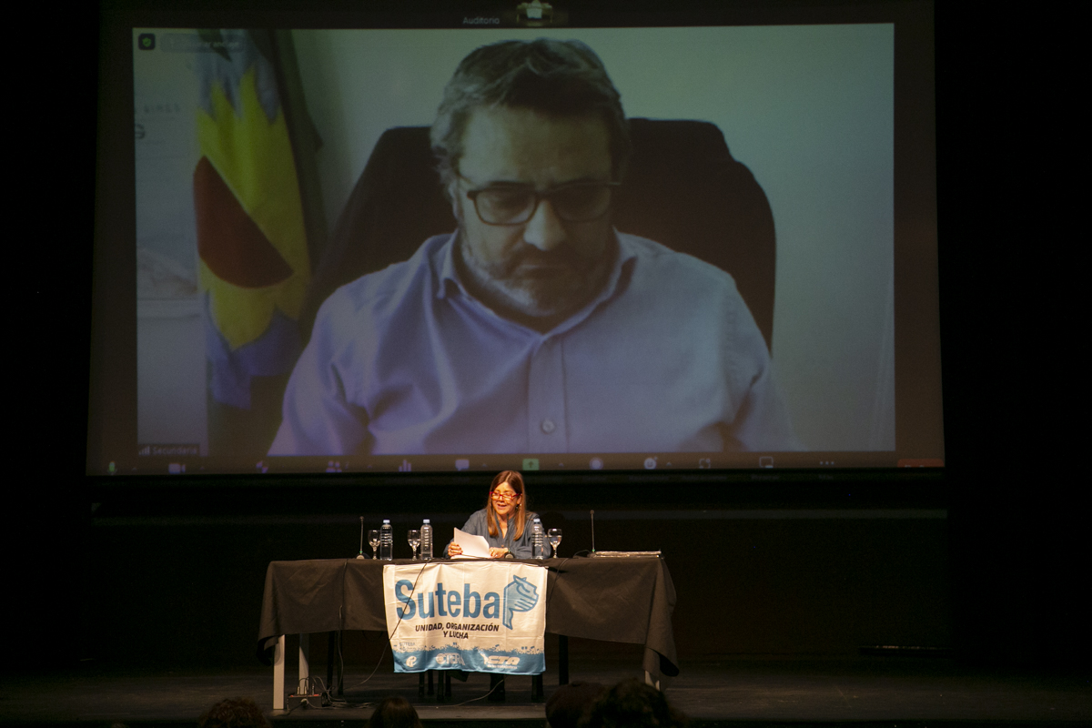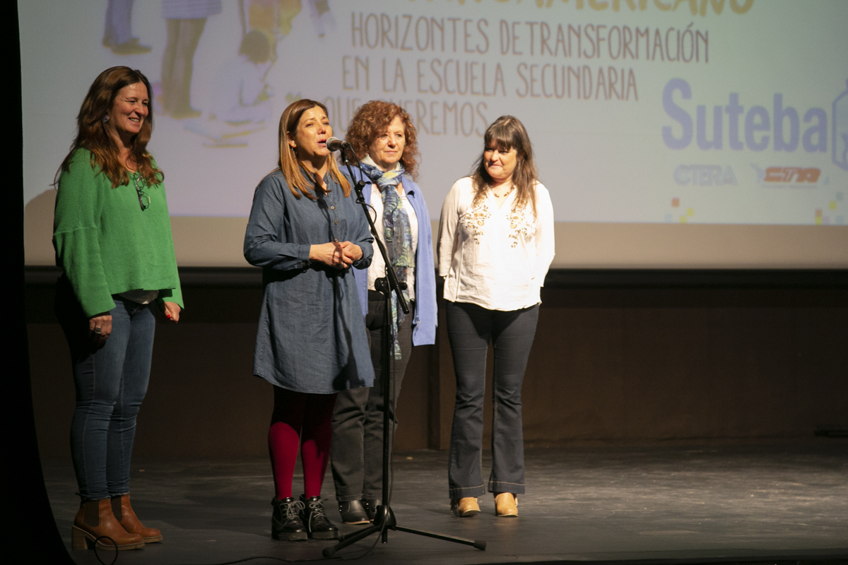 Luego Sandra Ramal invitó al escenario a Silvia Almazán, quien señaló: "Es una jornada histórica. Estamos recuperando lxs Trabajadorxs de la Educación organizadxs en el SUTEBA los espacios en los que reflexionamos sobre nuestra práctica, sobre nuestros proyectos, ratificamos las luchas que seguimos desarrollando, pero también nos desafiamos a construir las políticas públicas que son fundamentales para transformar la cotidianeidad de las Escuelas, las realidades injustas de las vidas escolares y de las vidas personales y comunitarias".