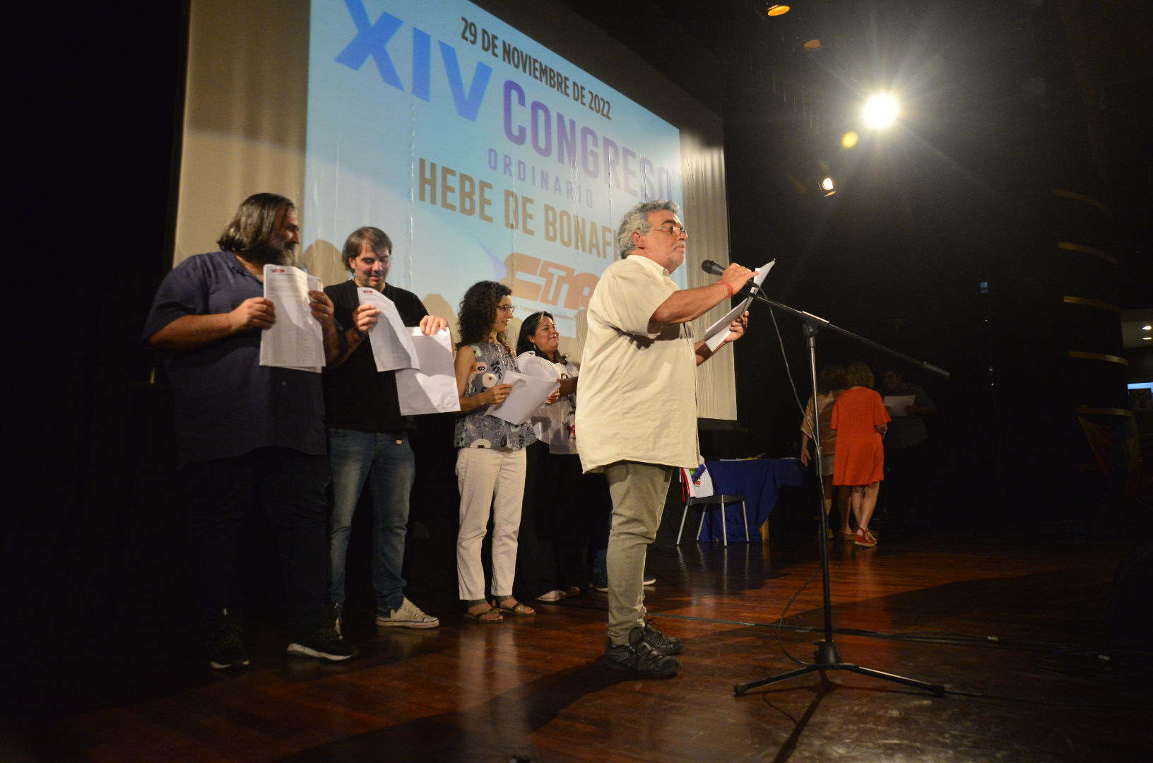 El Congreso, que sesionó en homenaje a Hebe de Bonafini, se llevó adelante bajo la conducción de Daniel Catalano, Secretario General Adjunto de la CTA-T, quien apenas iniciado el encuentro expresó la solidaridad de las Regionales de la Central de todo el país con Roberto Baradel, ante el ataque mediático del que fue objeto en estos días el Secretario General del SUTEBA.