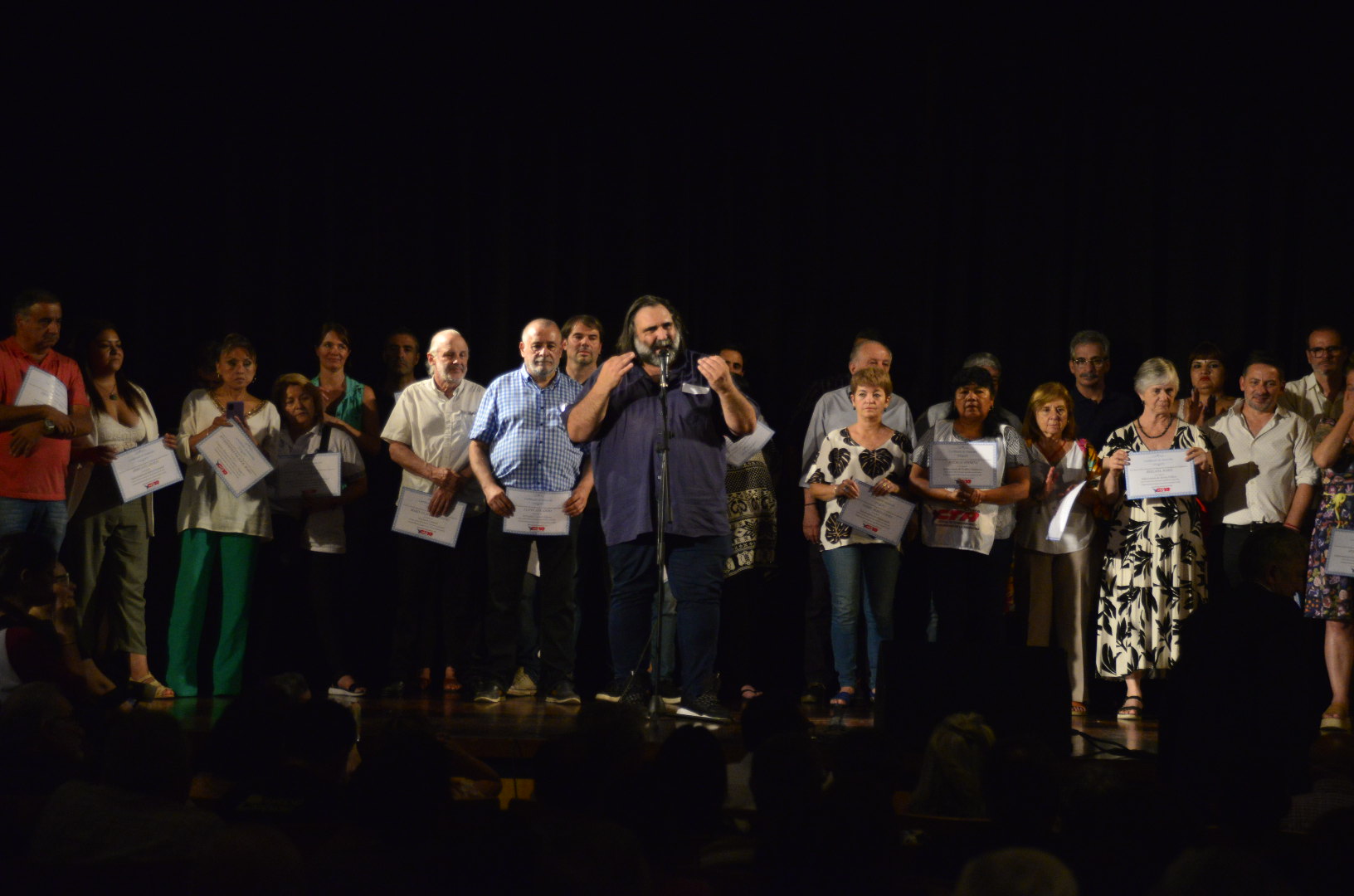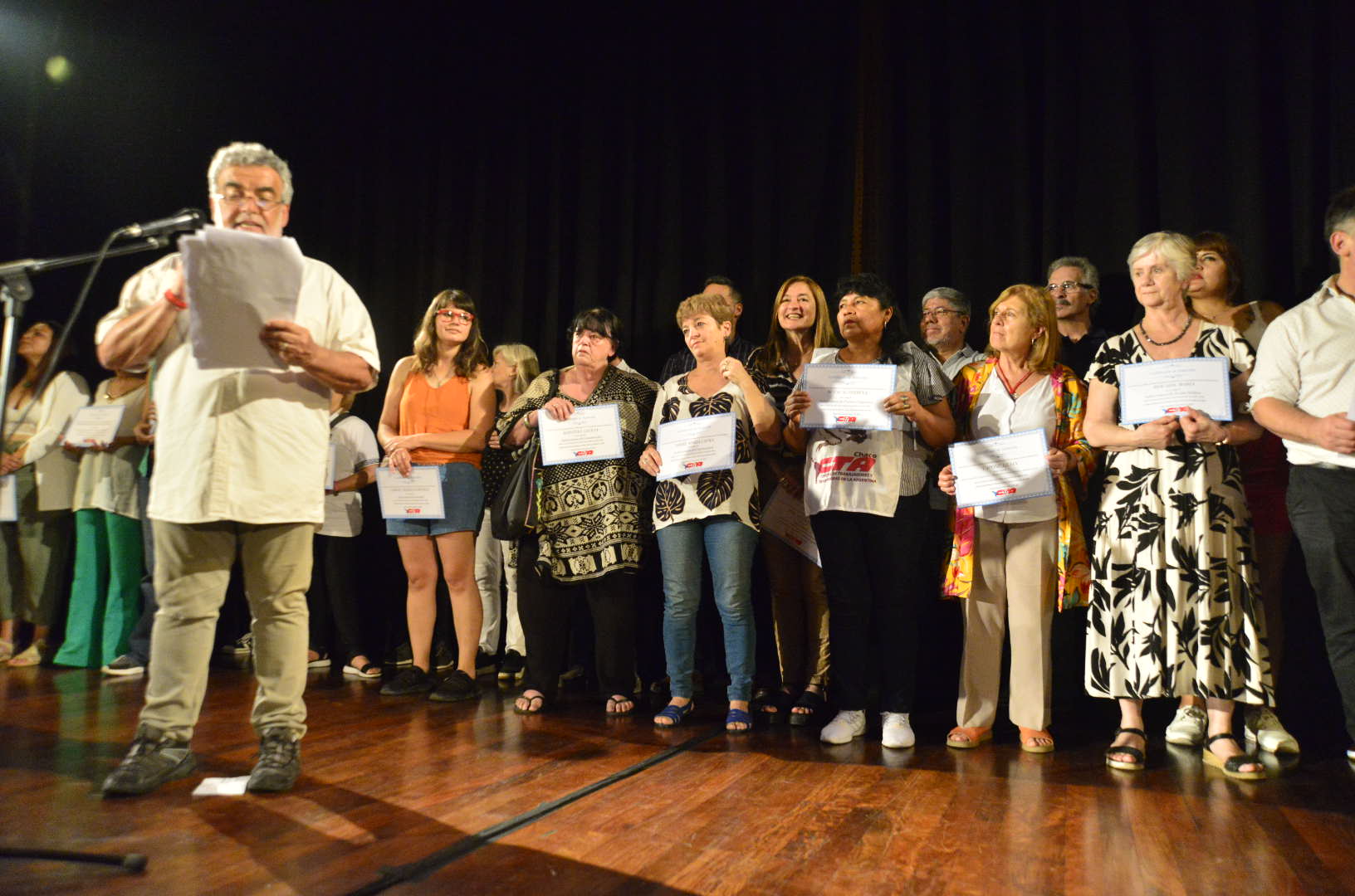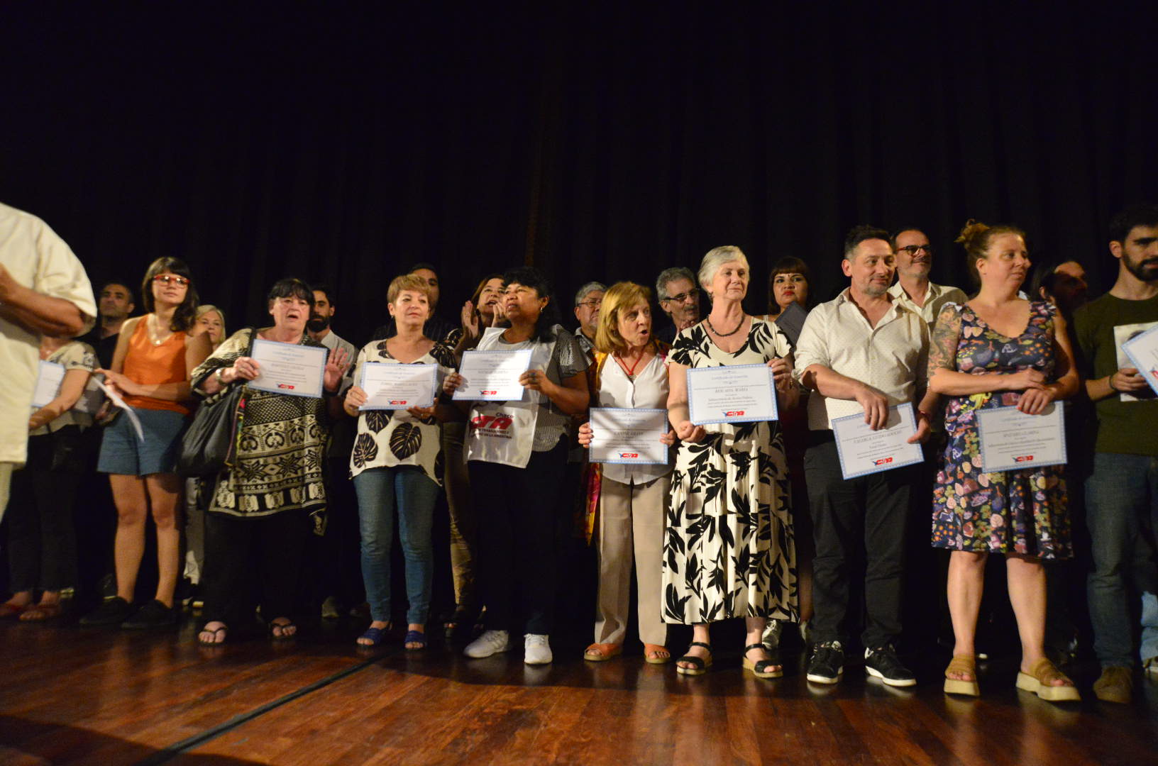 A continuación, subieron al escenario para recibir sus diplomas lxs Secretarixs Generales electxs de todas las provincias, lxs integrantes de la Comisión Revisora de Cuentas y lxs Secretarixs y Subsecretarixs que integran la conducción.