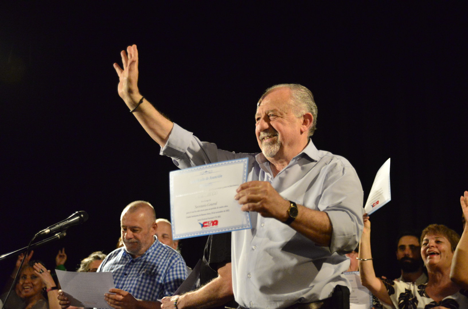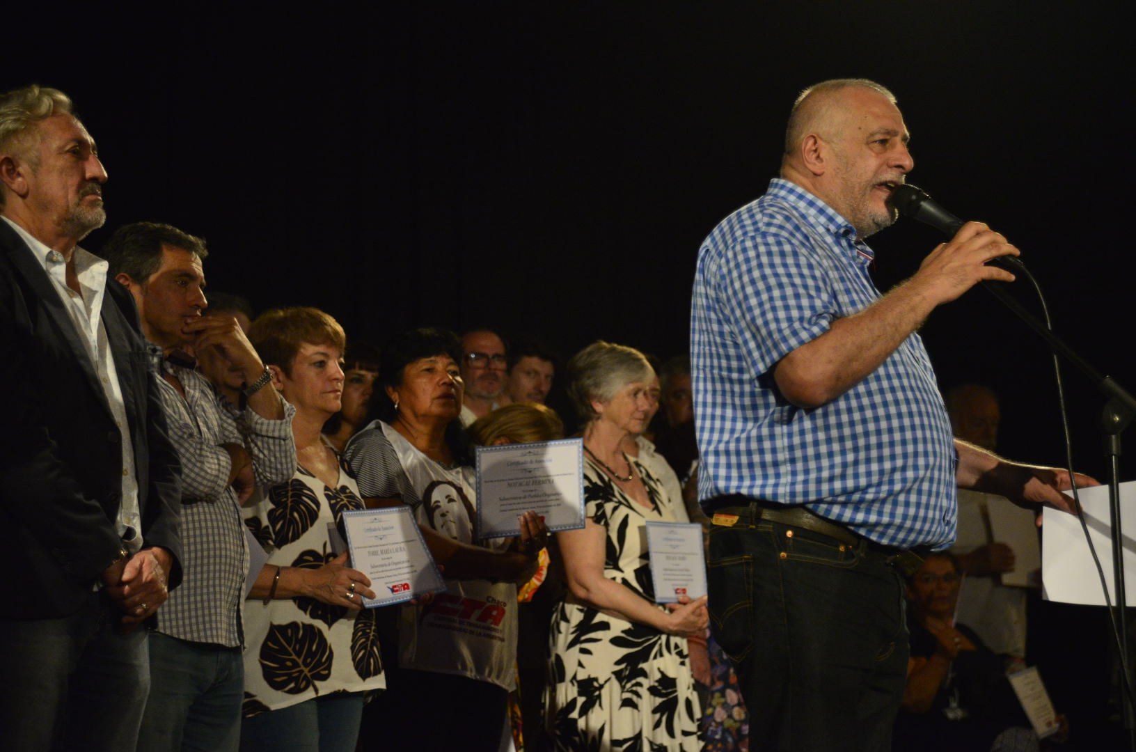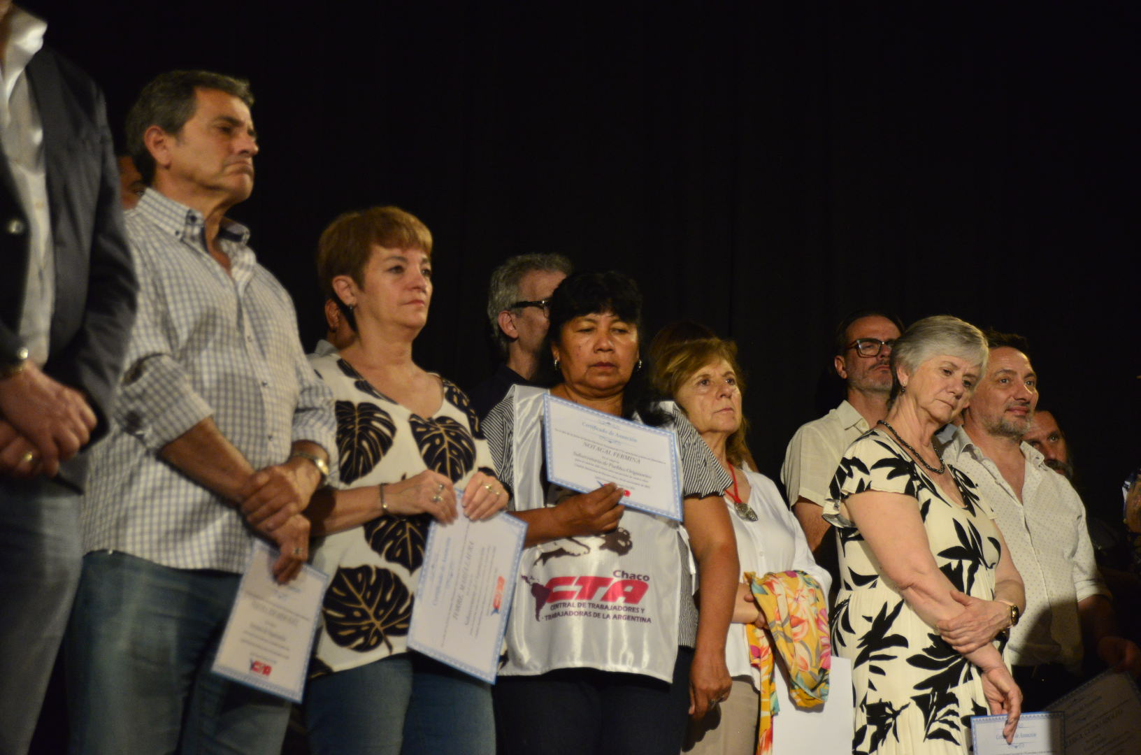 A continuación, subieron al escenario para recibir sus diplomas lxs Secretarixs Generales electxs de todas las provincias, lxs integrantes de la Comisión Revisora de Cuentas y lxs Secretarixs y Subsecretarixs que integran la conducción.
