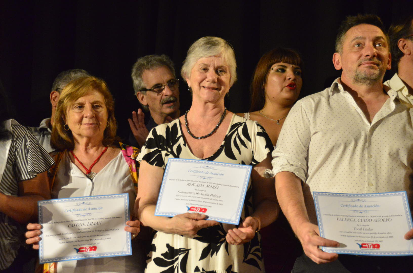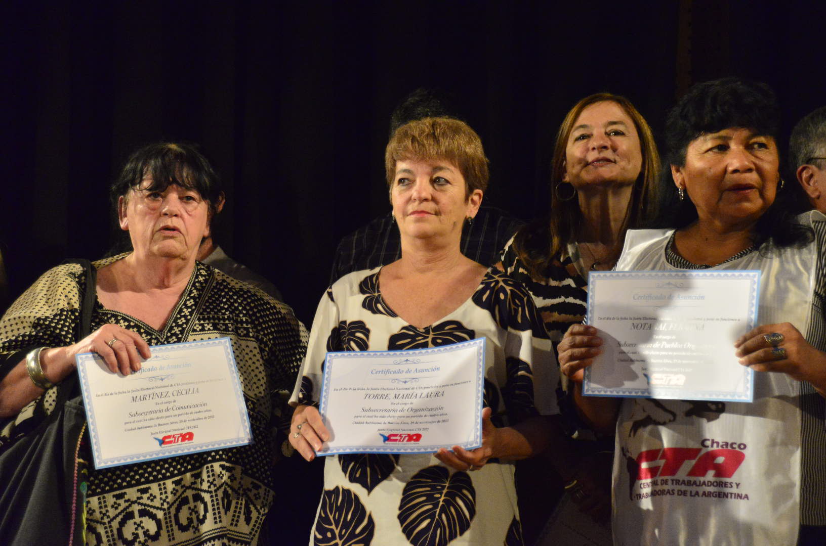 También asumieron sus cargos Cecilia Martínez (Subsecretaria de Comunicación); María Reigada (Subsecretaria de Acción Política); Lilian Capone (Subsecretaria de Condiciones y Medioambiente de Trabajo y Salud Laboral); y Juan Vitta (Secretario de Economía Social).
