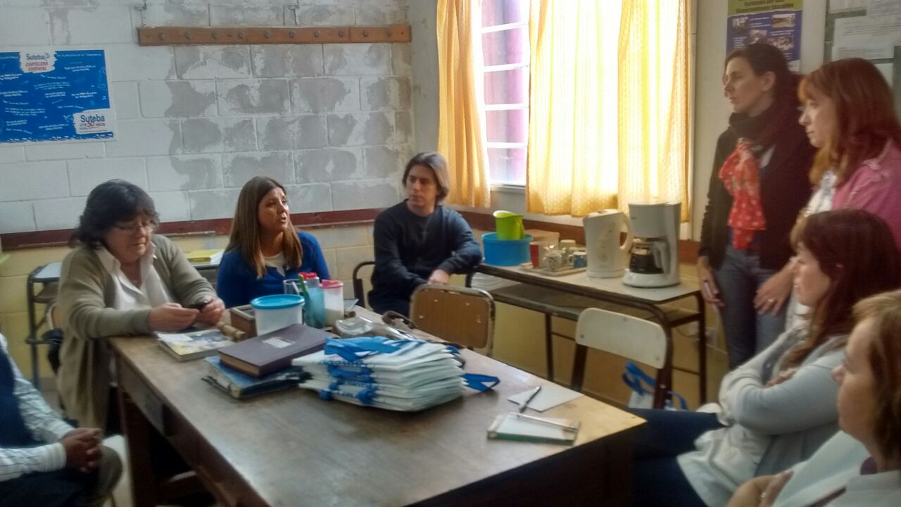 Torre manifestó: "Seguimos recorriendo las escuelas del distrito y conversando con los compañeros sobre la titularización en Superior, nuestro sistema jubilatorio, el Operativo 'Aprender 2016' y la necesidad de la reapertura de la paritaria salarial".