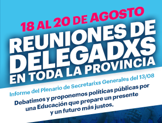Entre el 18 y el 20 de agosto el SUTEBA convocó a reuniones de Delegadxs en todos los distritos de la provincia de Buenos Aires, con el objetivo de debatir y realizar aportes para una Educación que nos prepare para un futuro mejor.