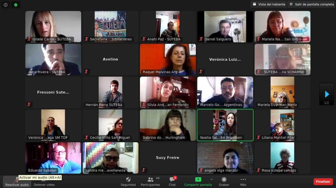 En el marco de la recorrida virtual de la provincia de Buenos Aires que está llevando a cabo la Secretaría de Jubilaciones del SUTEBA, hoy durante toda la mañana se realizó una nueva reunión.