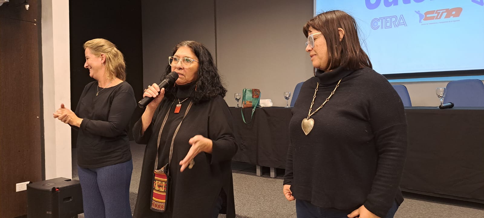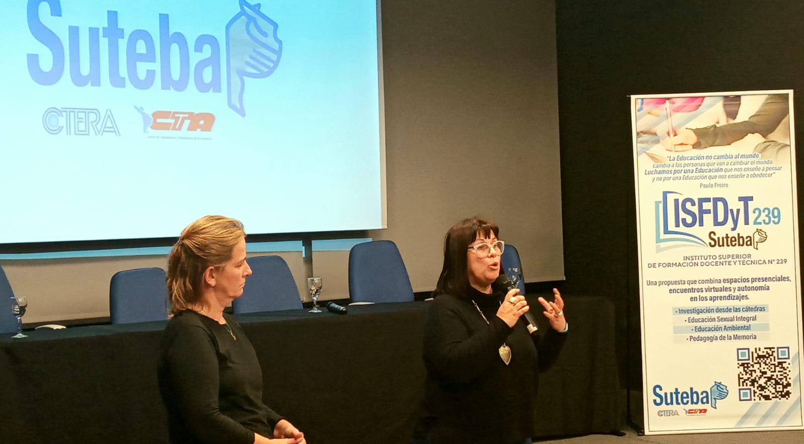 La jornada se inició con la presentación a cargo de Patricia Romero Díaz, Secretaria de DDHH del SUTEBA, Analía Meaurio, Subsecretaria, y Mariana Cattaneo, Secretaria de Formación Político Sindical, junto a Florencia Riccheri, Directora del ISFDyT 239.
