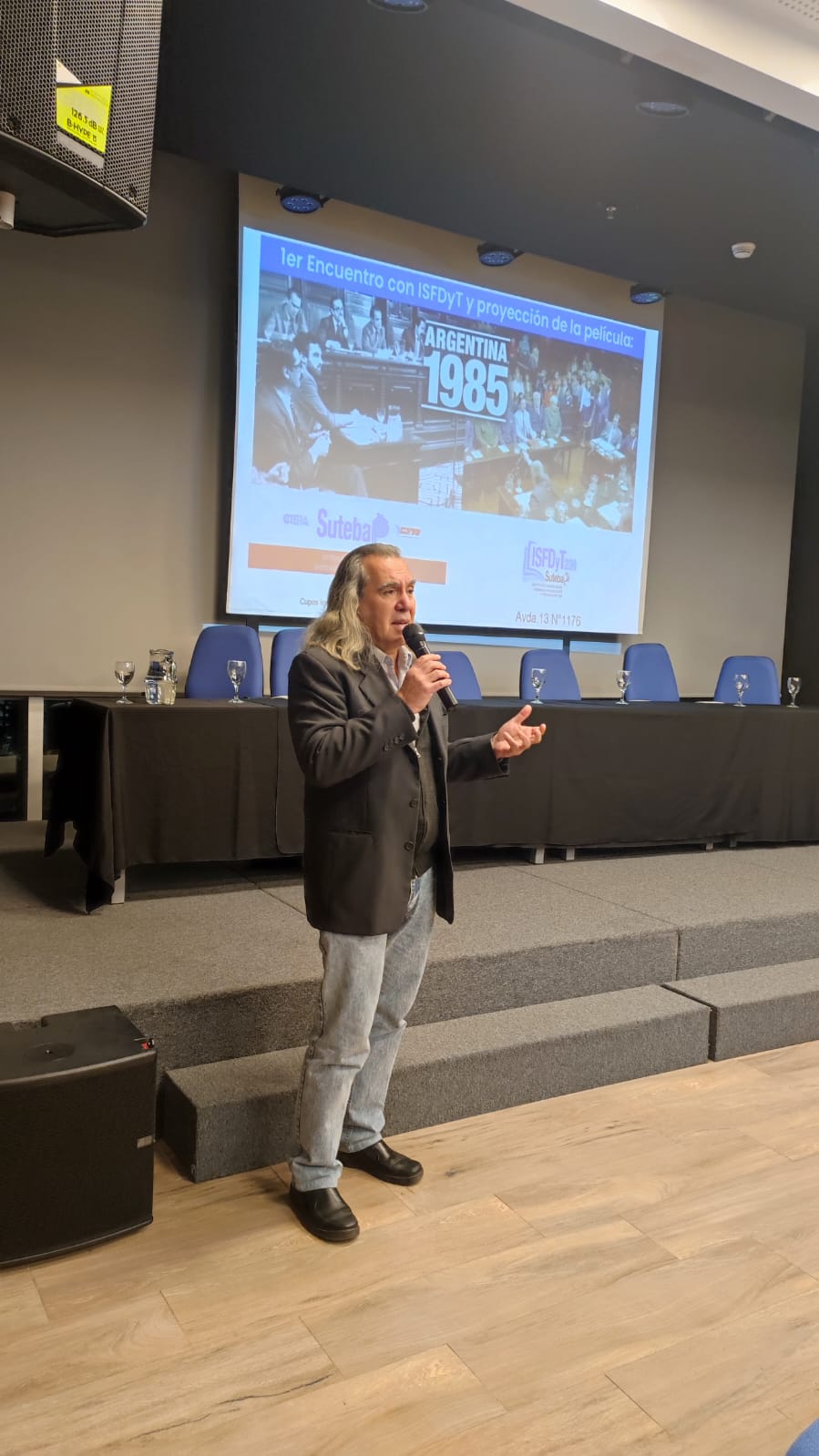 Luego de la proyección de la película "Argentina, 1985", el Periodista y Abogado en causas de Lesa Humanidad, Pablo Llonto, quien también fue protagonista del Juicio a las Juntas, donde participó como periodista e integrante del Centro de Estudios Legales y Sociales (CELS), realizó un agudo análisis y reflexión, destacando la importancia vertebral que ha tenido el Juicio a las Juntas en el sostenimiento de la Democracia, y cómo aquel hecho histórico constituyó un precedente fundamental en la construcción y desarrollo del proceso de Memoria, Verdad y Justicia en nuestro país, siendo hoy ejemplo a nivel mundial en cuanto a políticas de justicia y reparación sobre este tipo de acontecimientos.