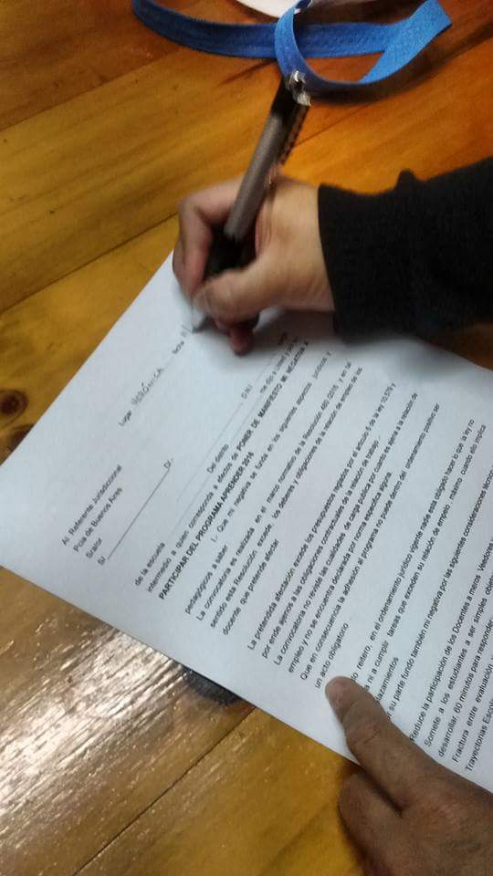 Dicho documento fue firmado y utilizado por docentes, directivos, estudiantes y toda la comunidad educativa para no formar parte del "Aprender 2016".