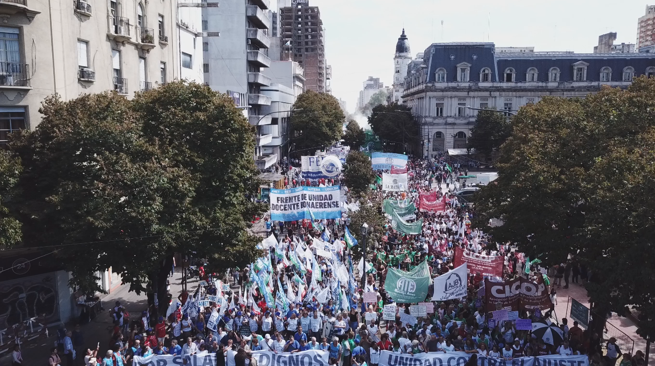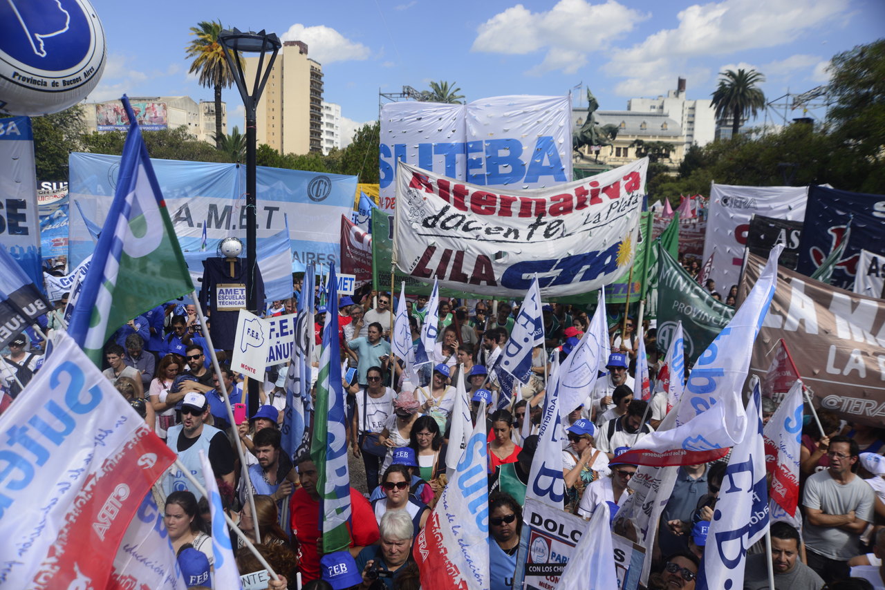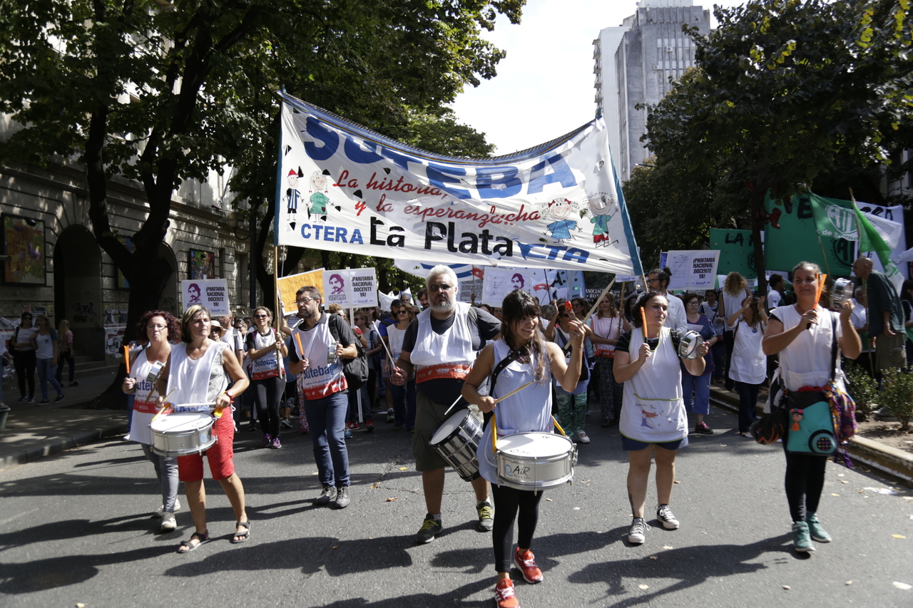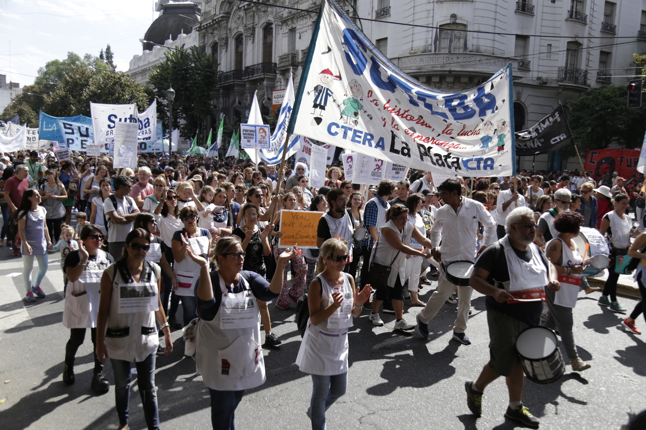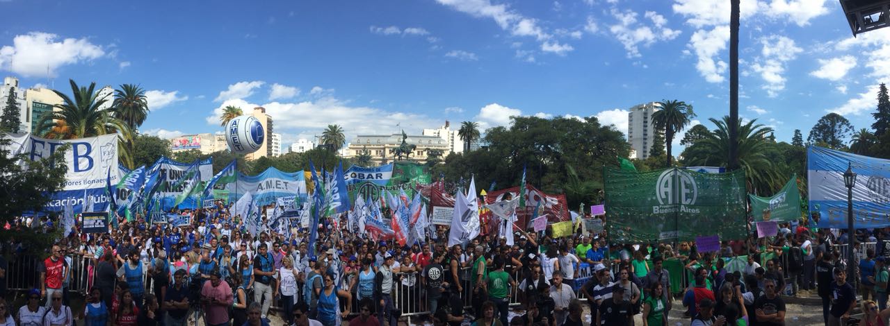 Más de 60.000 Docentes y estatales de la provincia de Buenos Aires nos movilizamos hacia la Casa de Gobierno para frenar el ajuste de la Gobernadora María Eugenia Vidal; convocadxs por: AEMOPBA, AJB, AMET, ATE, FEB, CICOP, SADOP, SUTEBA y UDOCBA.