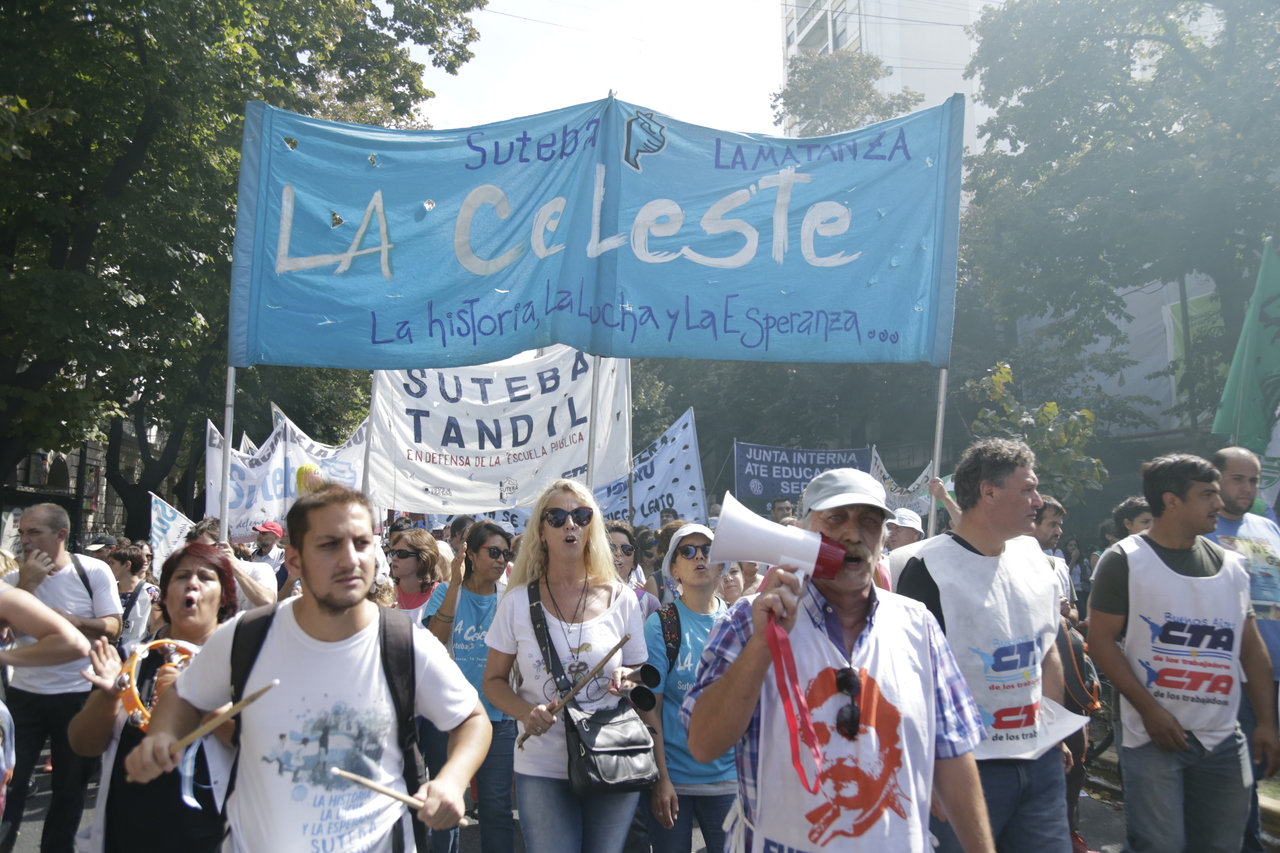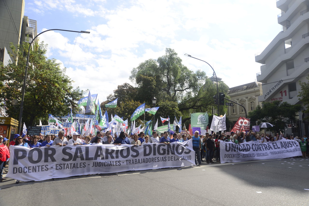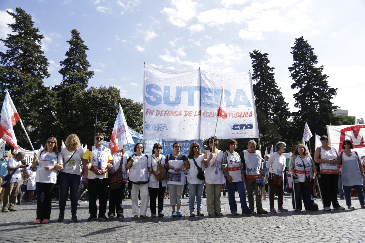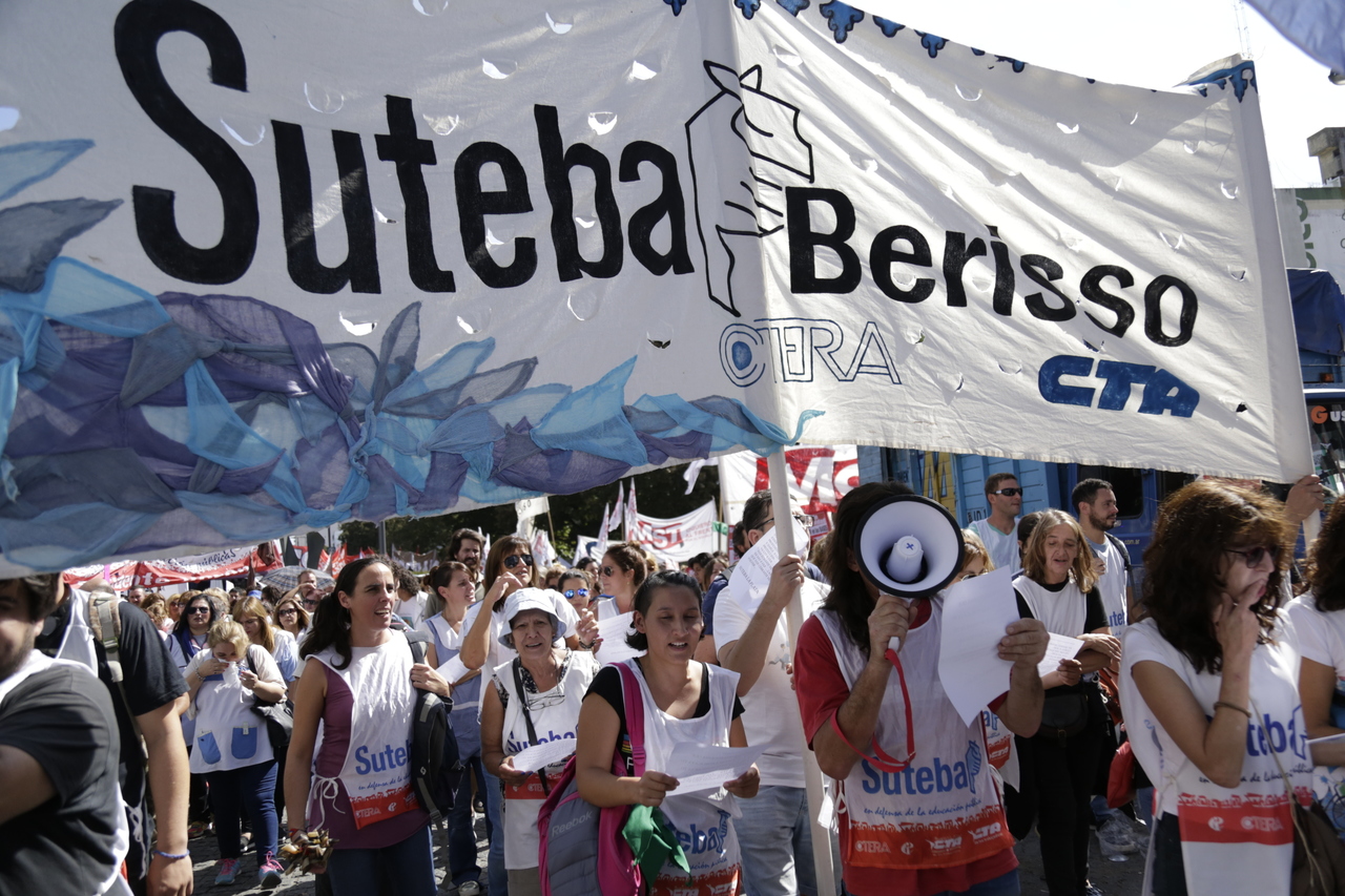 Más de 60.000 Docentes y estatales de la provincia de Buenos Aires nos movilizamos hacia la Casa de Gobierno para frenar el ajuste de la Gobernadora María Eugenia Vidal; convocadxs por: AEMOPBA, AJB, AMET, ATE, FEB, CICOP, SADOP, SUTEBA y UDOCBA.