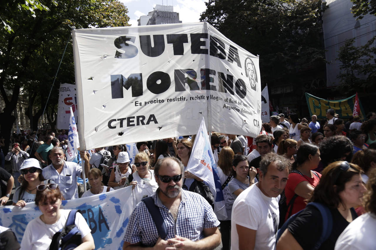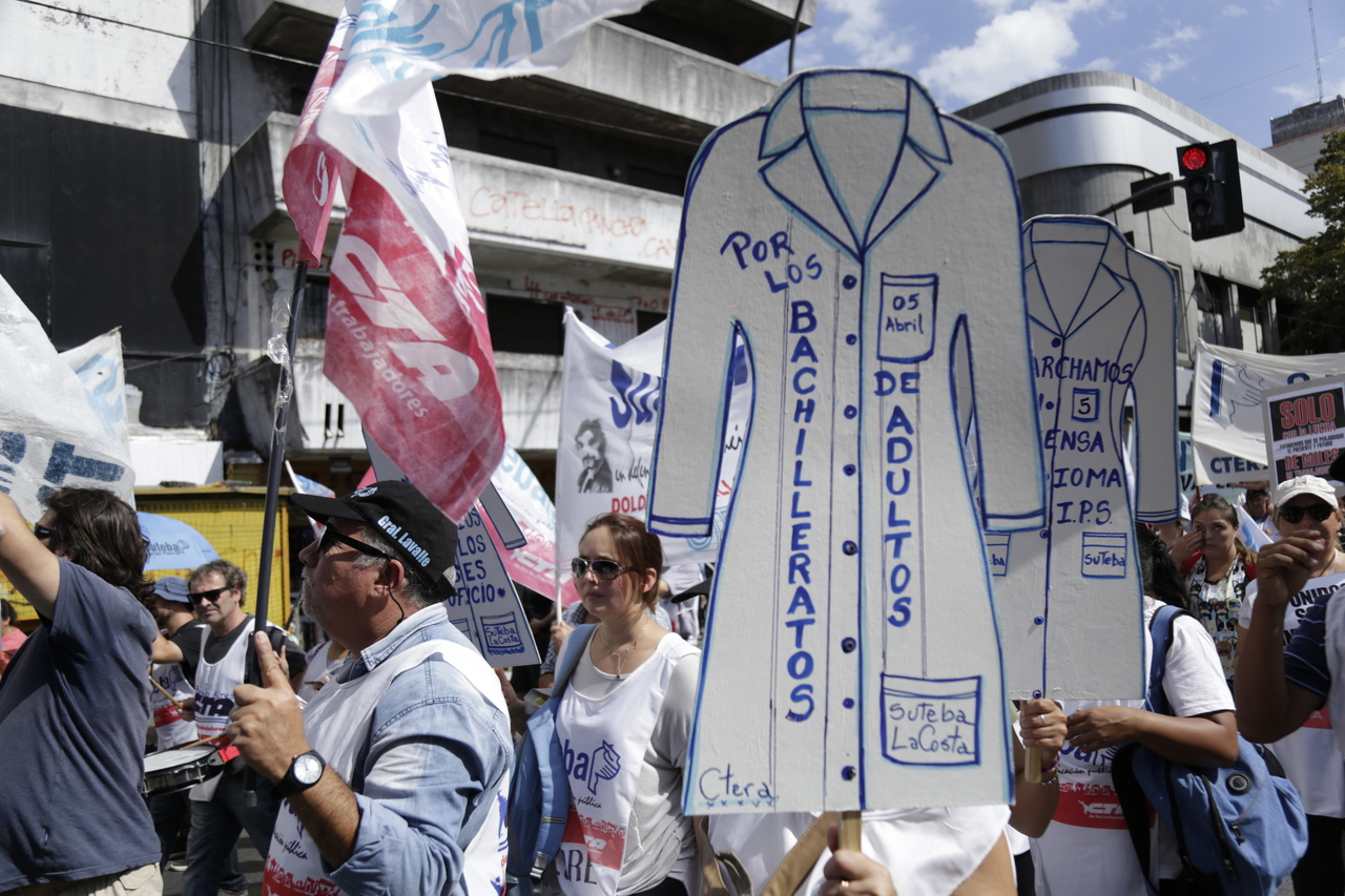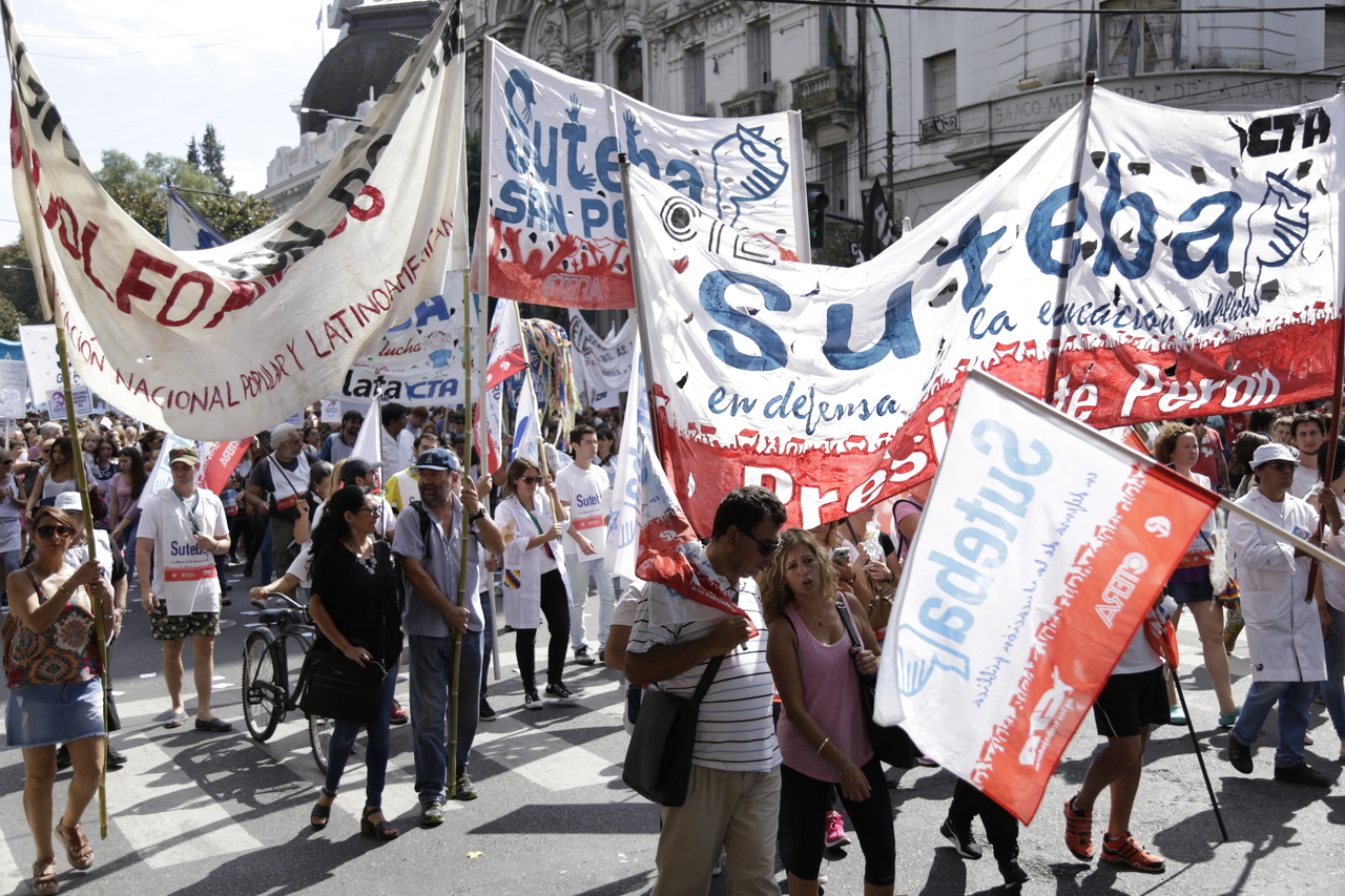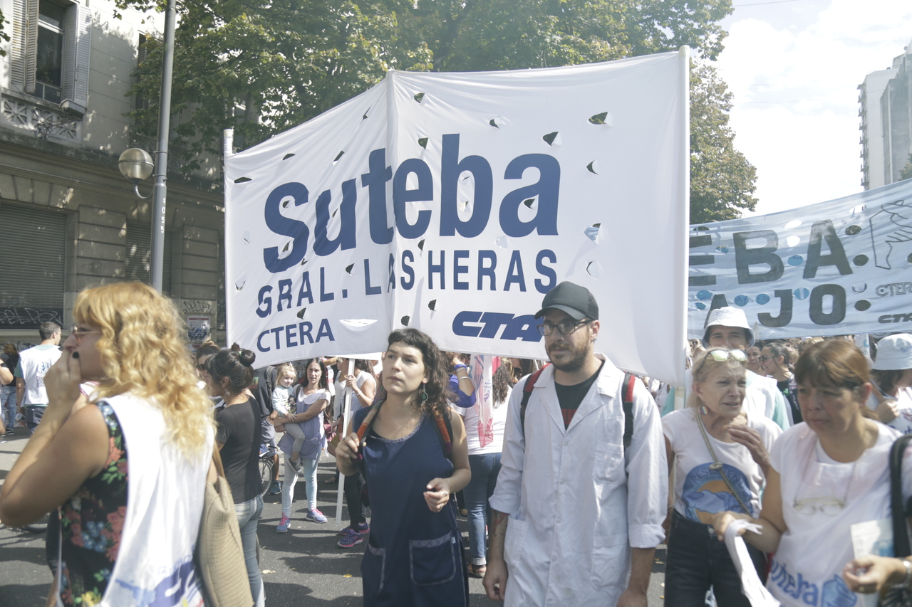 Más de 60.000 Docentes y estatales de la provincia de Buenos Aires nos movilizamos hacia la Casa de Gobierno para frenar el ajuste de la Gobernadora María Eugenia Vidal; convocadxs por: AEMOPBA, AJB, AMET, ATE, FEB, CICOP, SADOP, SUTEBA y UDOCBA.