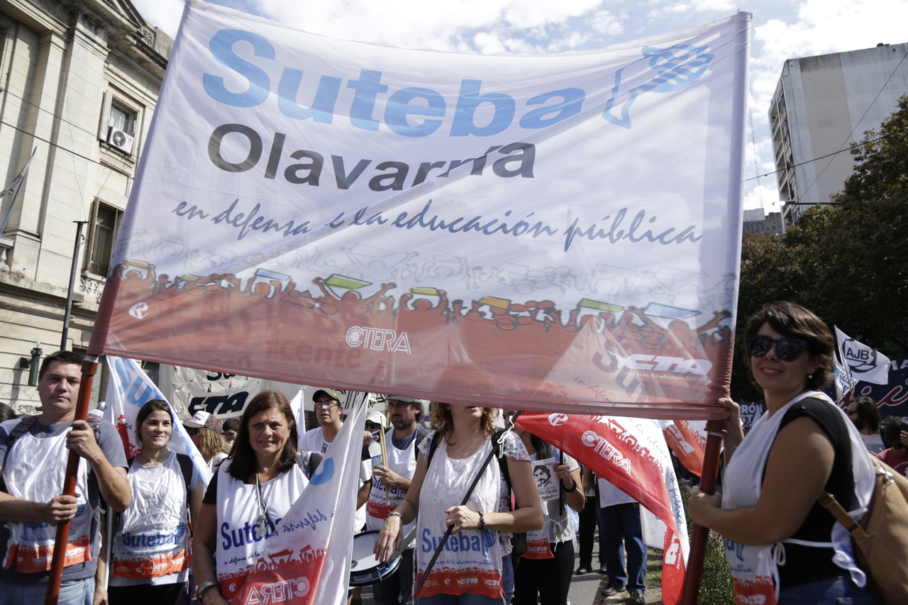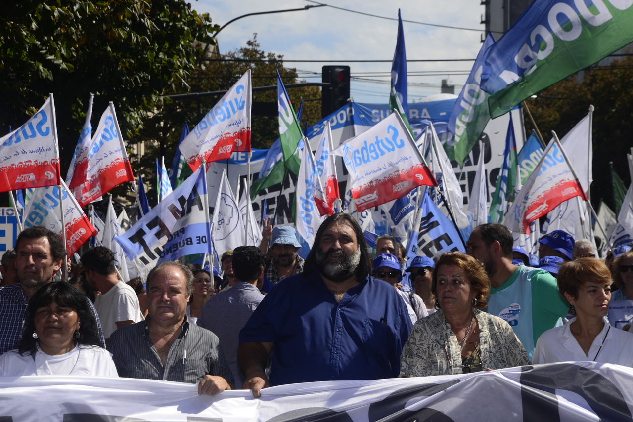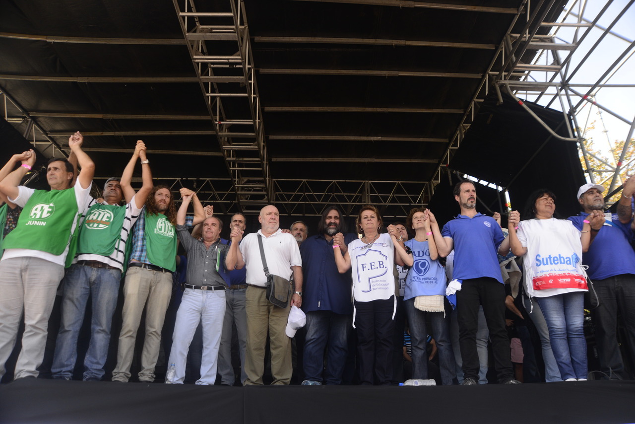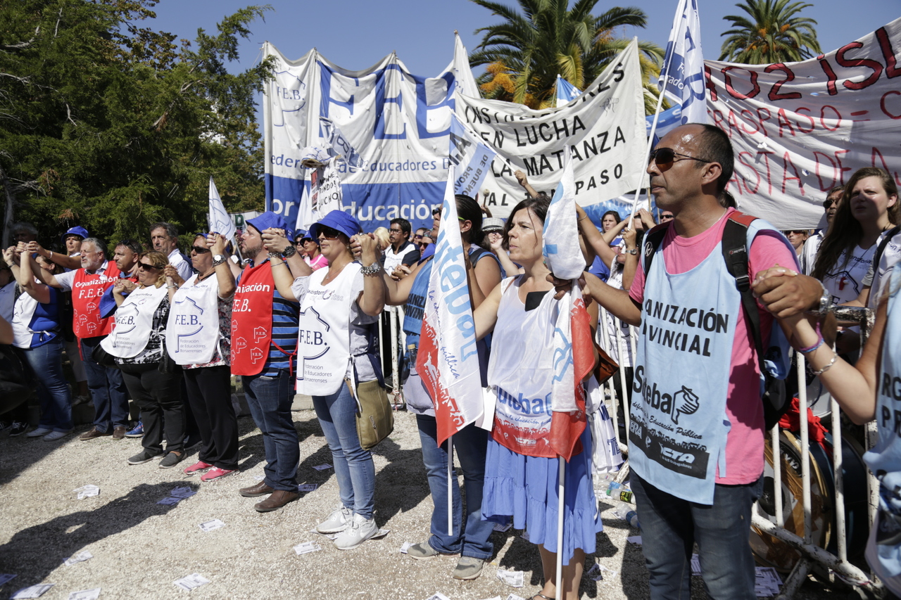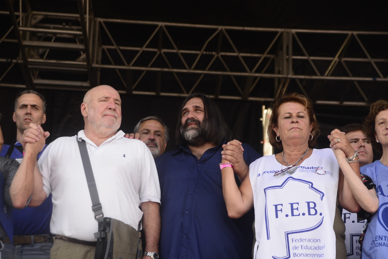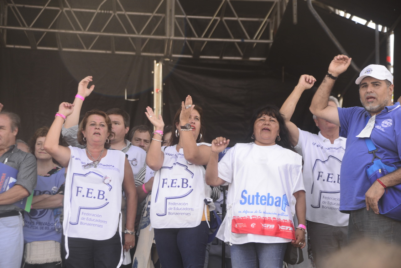 "Mienten cuando dicen que invierten en Educación, que el promedio salarial es de $25.000, que el aumento va a ser del 18%. Volvemos a repetirlo, seis veces nos ofrecieron lo mismo: el 15%, lo que varió fueron las sumas no remunerativas. Nosotrxs no vamos a firmar ninguna oferta que no incluya a nuestrxs jubiladxs o que nos obligue a cambiar plata por salud. La intención de Vidal no es negociar, es disciplinarnos y bajarnos los salarios. Acá tiene la respuesta: un Paro masivo y contundente", enfatizó Baradel.