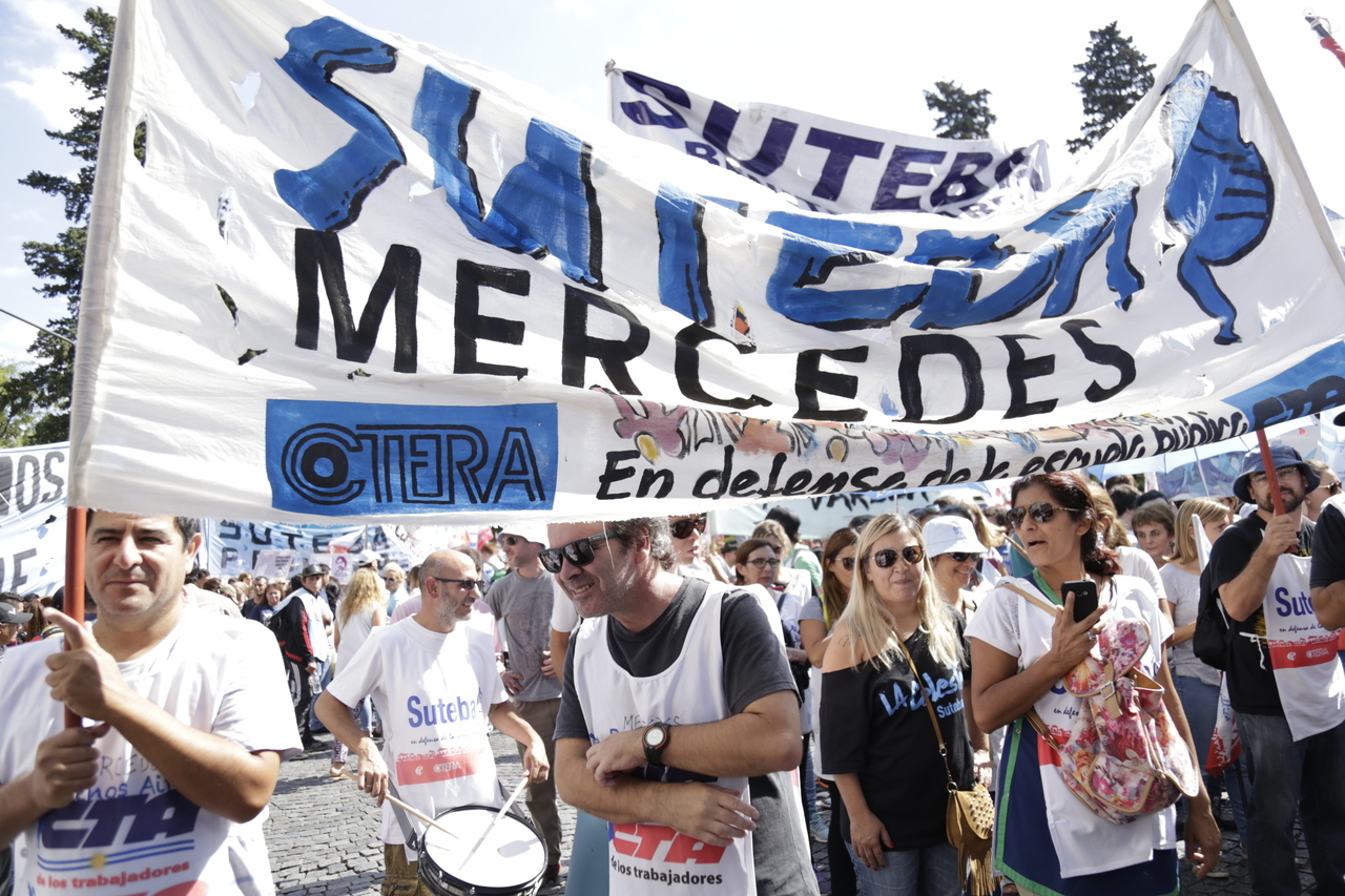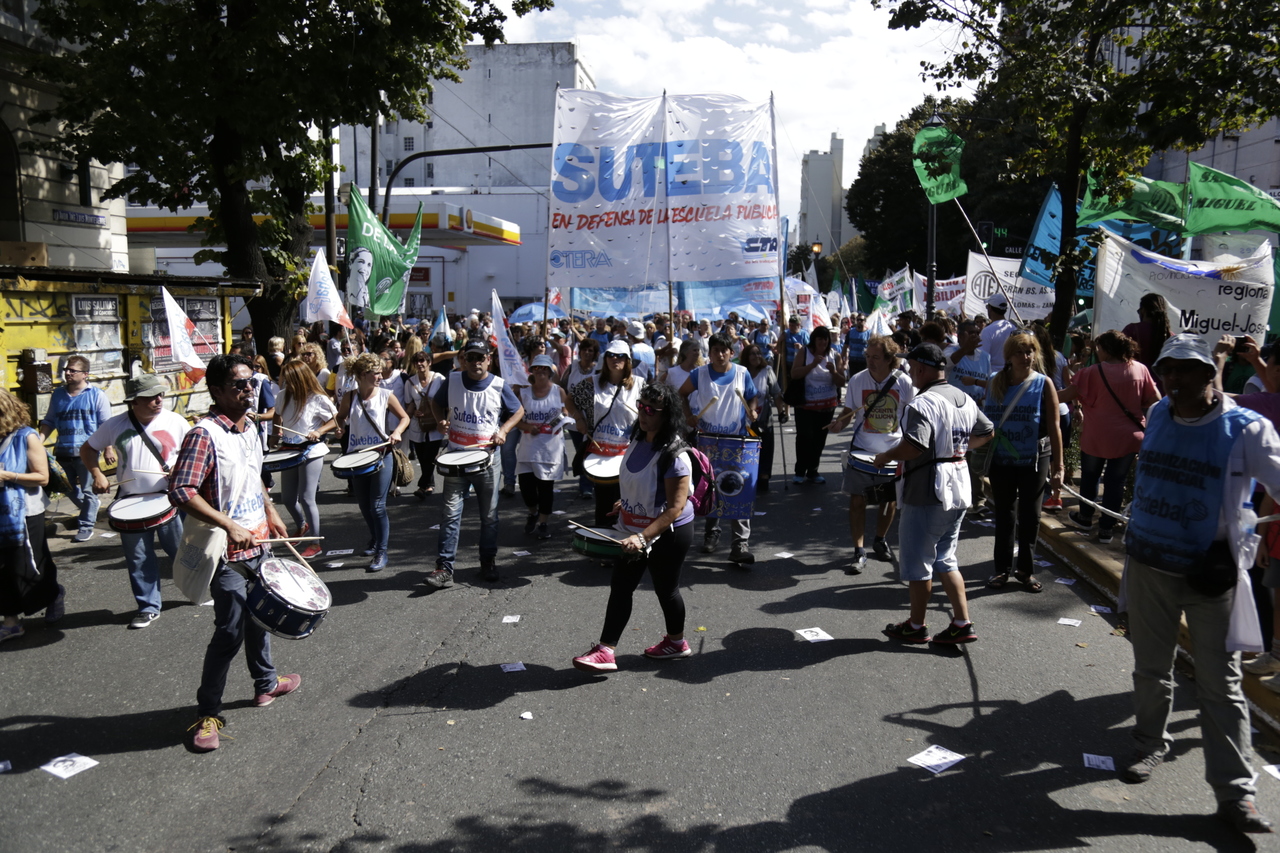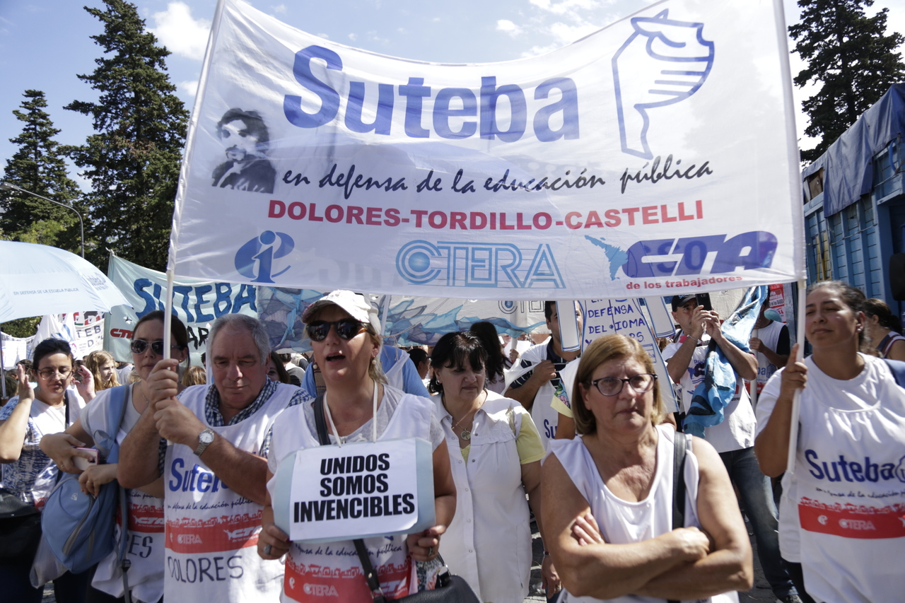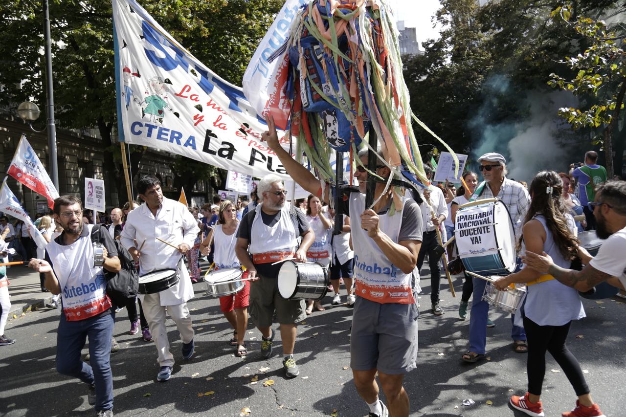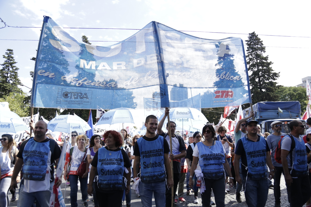 "Mienten cuando dicen que invierten en Educación, que el promedio salarial es de $25.000, que el aumento va a ser del 18%. Volvemos a repetirlo, seis veces nos ofrecieron lo mismo: el 15%, lo que varió fueron las sumas no remunerativas. Nosotrxs no vamos a firmar ninguna oferta que no incluya a nuestrxs jubiladxs o que nos obligue a cambiar plata por salud. La intención de Vidal no es negociar, es disciplinarnos y bajarnos los salarios. Acá tiene la respuesta: un Paro masivo y contundente", enfatizó Baradel.