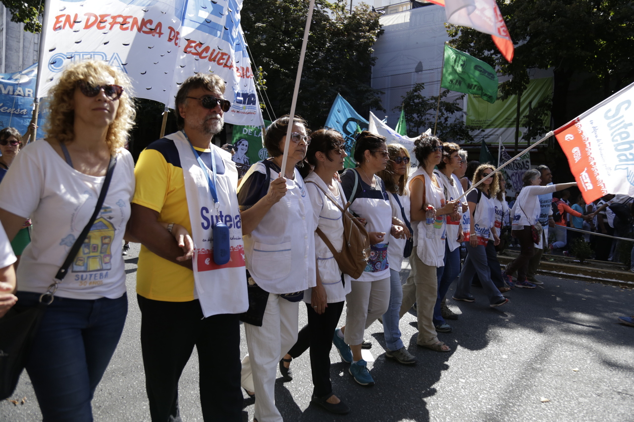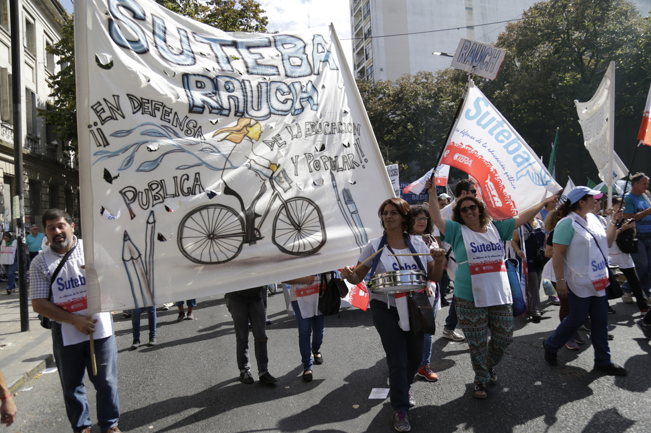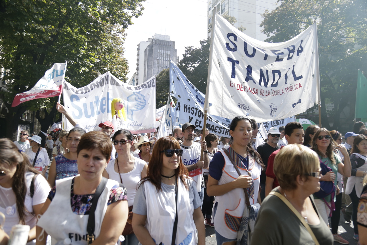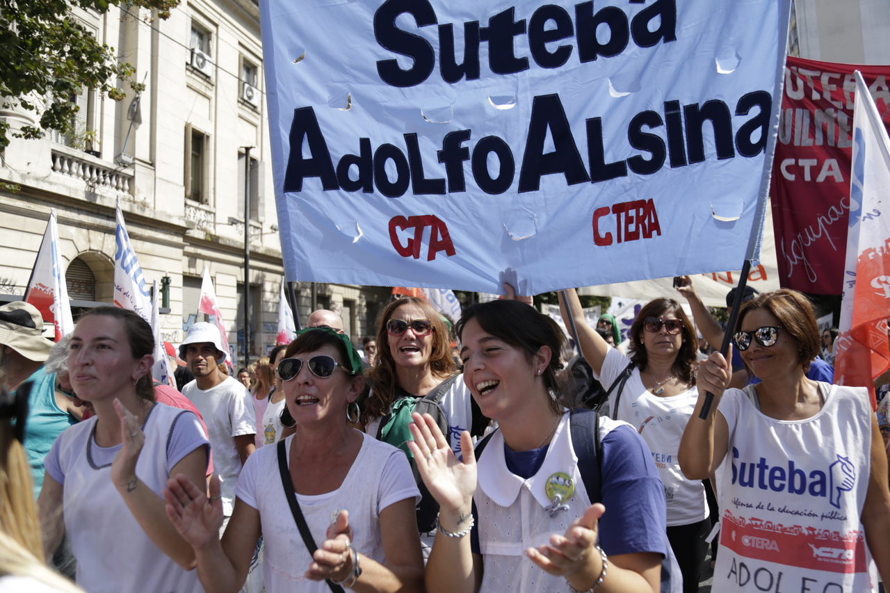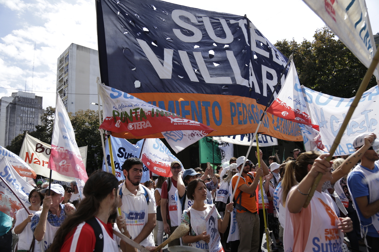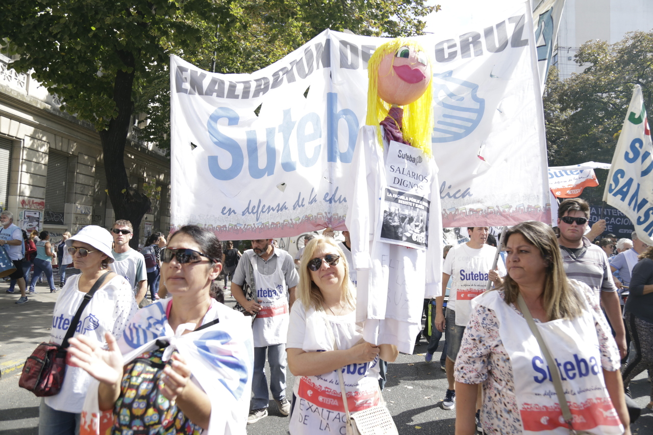 "Mienten cuando dicen que invierten en Educación, que el promedio salarial es de $25.000, que el aumento va a ser del 18%. Volvemos a repetirlo, seis veces nos ofrecieron lo mismo: el 15%, lo que varió fueron las sumas no remunerativas. Nosotrxs no vamos a firmar ninguna oferta que no incluya a nuestrxs jubiladxs o que nos obligue a cambiar plata por salud. La intención de Vidal no es negociar, es disciplinarnos y bajarnos los salarios. Acá tiene la respuesta: un Paro masivo y contundente", enfatizó Baradel.
