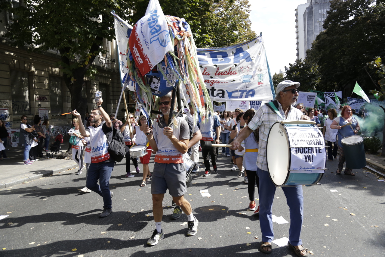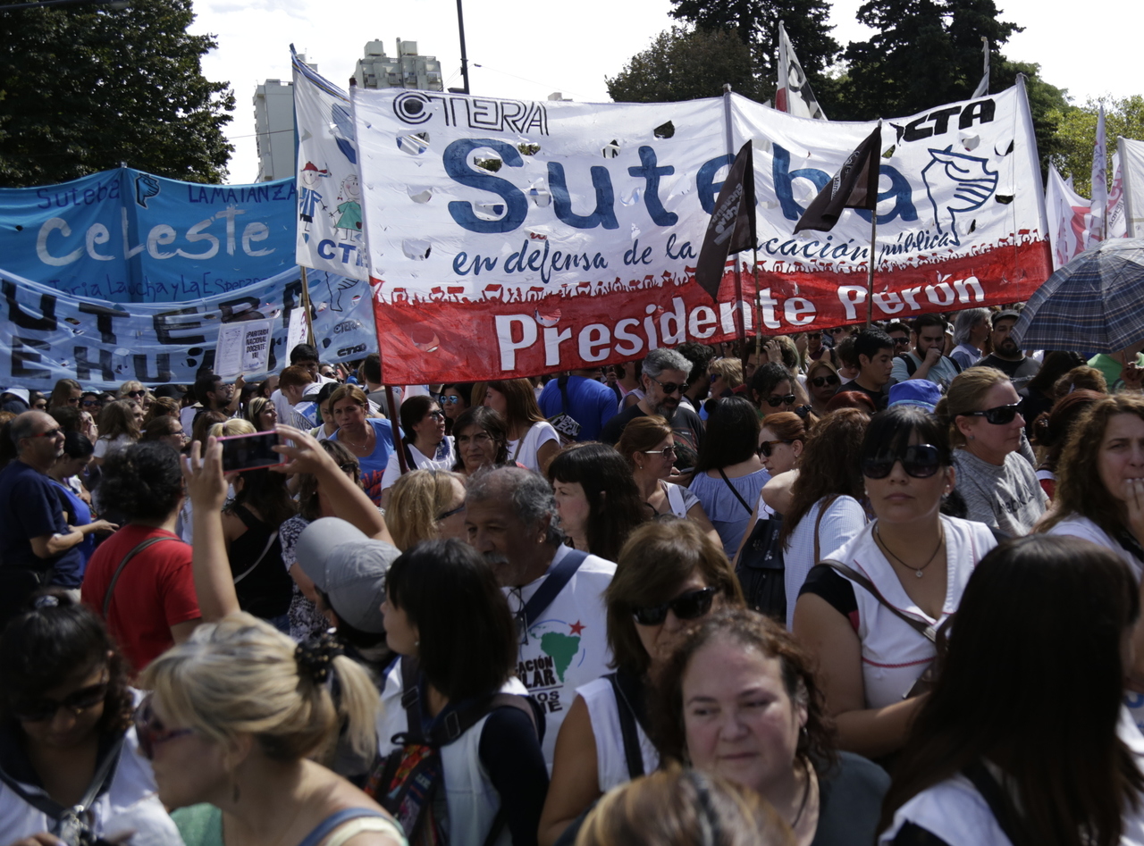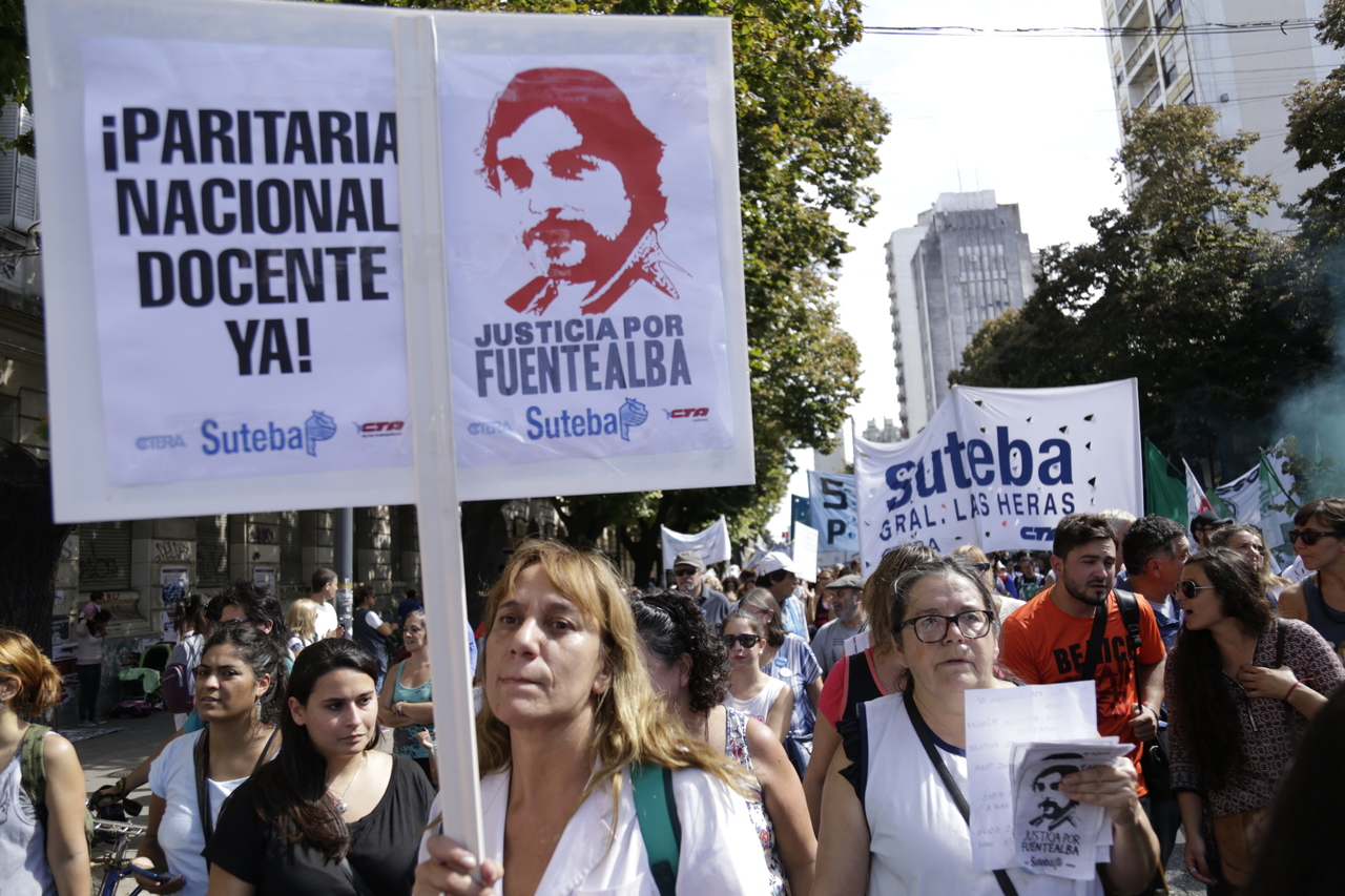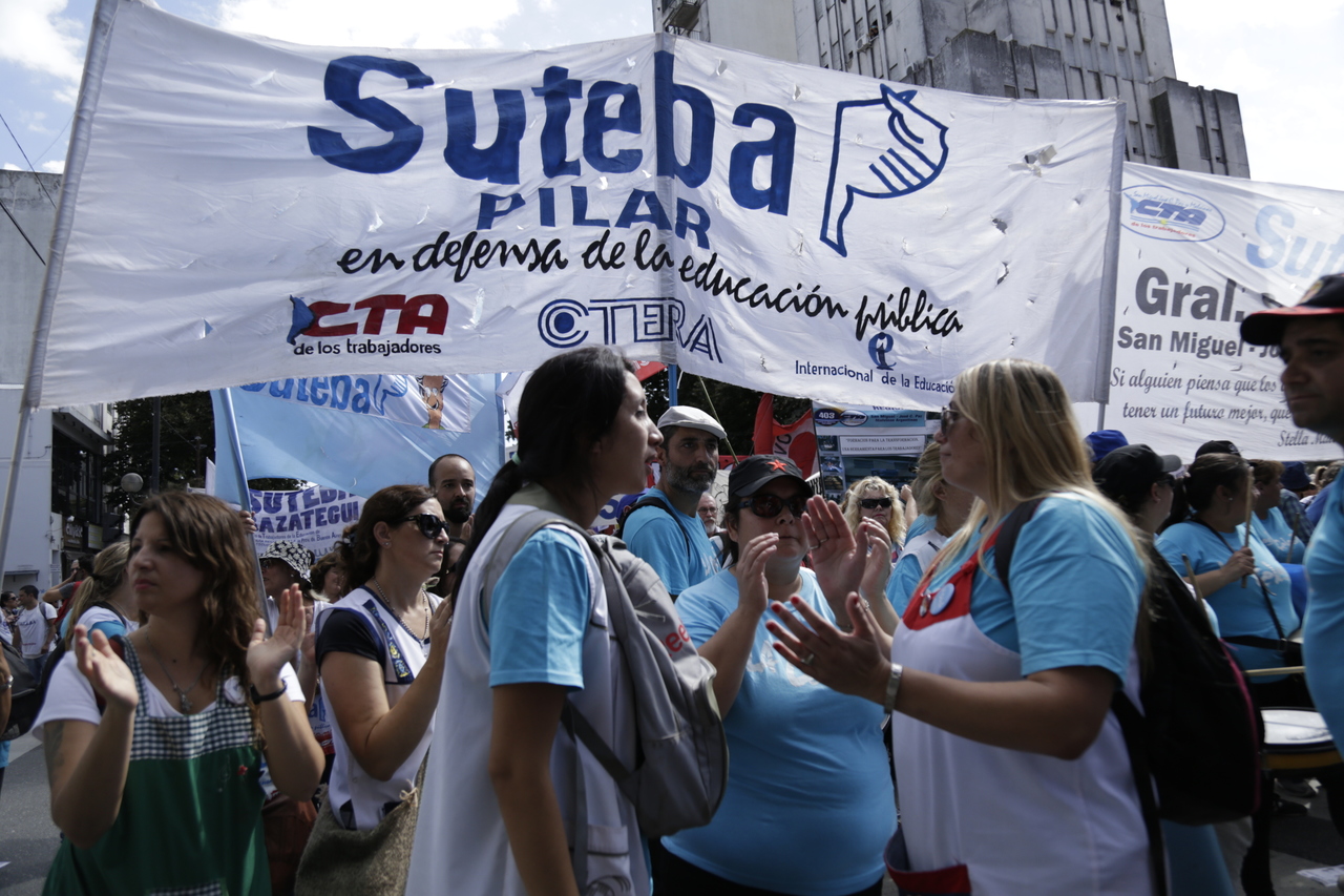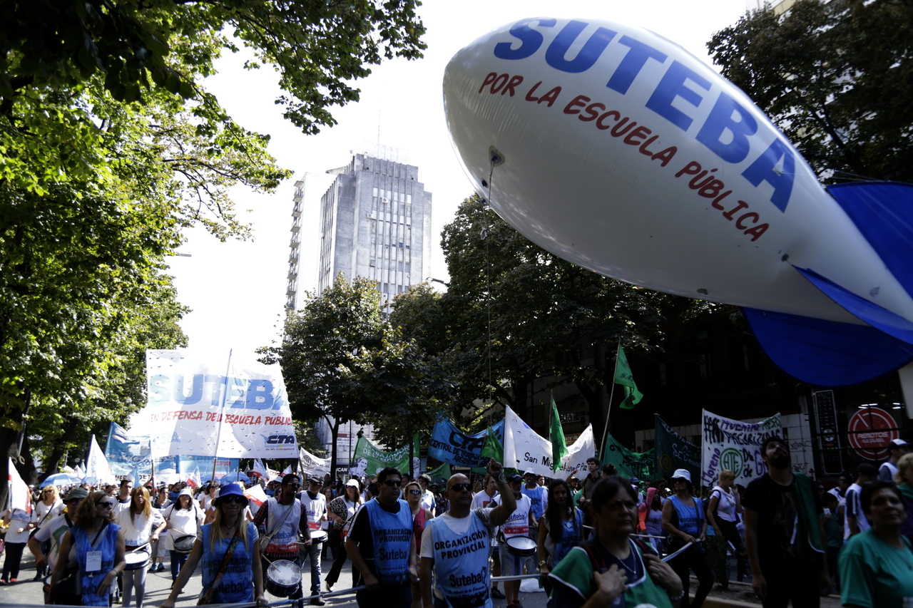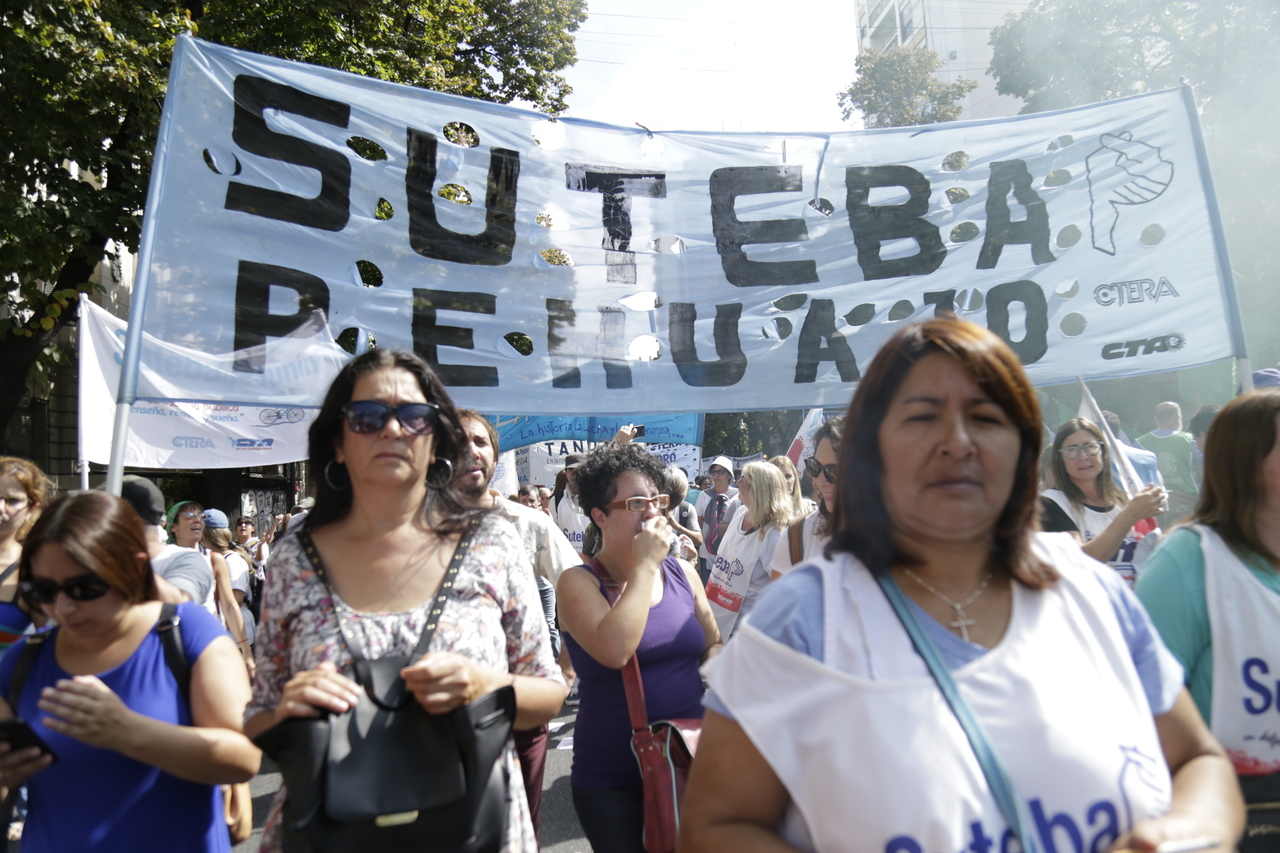 "Mienten cuando dicen que invierten en Educación, que el promedio salarial es de $25.000, que el aumento va a ser del 18%. Volvemos a repetirlo, seis veces nos ofrecieron lo mismo: el 15%, lo que varió fueron las sumas no remunerativas. Nosotrxs no vamos a firmar ninguna oferta que no incluya a nuestrxs jubiladxs o que nos obligue a cambiar plata por salud. La intención de Vidal no es negociar, es disciplinarnos y bajarnos los salarios. Acá tiene la respuesta: un Paro masivo y contundente", enfatizó Baradel.